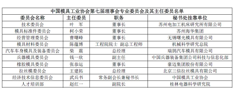 中國模具工業(yè)協(xié)會(huì )第七屆理事會(huì )專(zhuān)業(yè)委員會(huì )及其主任委員名單