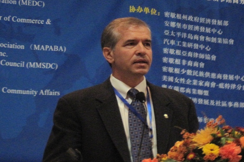 6,密歇根經(jīng)濟發(fā)展署Mark Kinsler副署長(cháng)做了“機遇盡在淳靜密西根”的精彩報告。介紹了2010年密西根州的復蘇情況、主要優(yōu)勢、人才優(yōu)勢、汽車(chē)行業(yè)的領(lǐng)先優(yōu)勢:整車(chē)和零部件制造業(yè)數量第一(1,798),外商獨資企業(yè)占20%(357),北美百強汽車(chē)零部件供應商數量第一(61),工具和模具企業(yè)數量第一(1,526),汽車(chē)OEM裝配廠(chǎng)數量第一(12 ),部件OEM/材料廠(chǎng)數量第一(35),汽車(chē)行業(yè)的領(lǐng)先地位:全球研發(fā)中心,375家汽車(chē)研發(fā)和技術(shù)中心,其中120家是外資企業(yè),每年與汽車(chē)有關(guān)的研發(fā)投入近120億美元,是美國各州中最多的,占全美25 %的汽車(chē)專(zhuān)利,達到其他州的2.5倍,北美汽車(chē)供應商百強企業(yè)中有61家總部都設在密西根州。該州也是北美的制造業(yè)中心,全美超過(guò)三分之一的制造業(yè)公司位于密西根州。同時(shí)還介紹了底特律被布魯研究所列為全國經(jīng)濟大蕭條之后第9大“恢復最好”的城市 ,底特律 - 超值投資地之選。最后介紹了中國再密歇根州的投資情況,到目前為止,中國企業(yè)在密西根州的投資總額約為10億美元,在美國排名第9,95%的中國企業(yè)在密西根投資是在汽車(chē)行業(yè),中國在密西根汽車(chē)研發(fā)外資投資中排名第一?,F在有超過(guò)100家中國公司在密西根州開(kāi)展業(yè)務(wù)。歡迎中國各行業(yè)的朋友到密歇根投資。促進(jìn)中美合作,實(shí)現雙贏(yíng)。