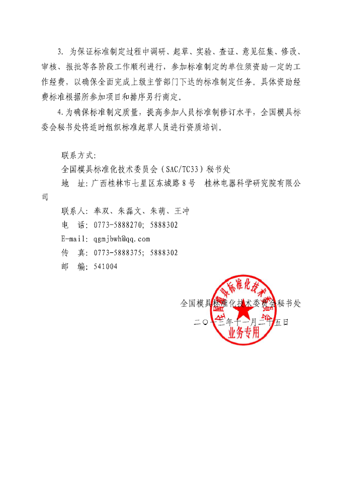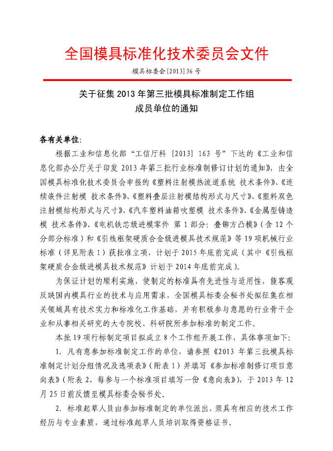 關(guān)于征集2013年第三批模具標準制定工作組成員單位的通知