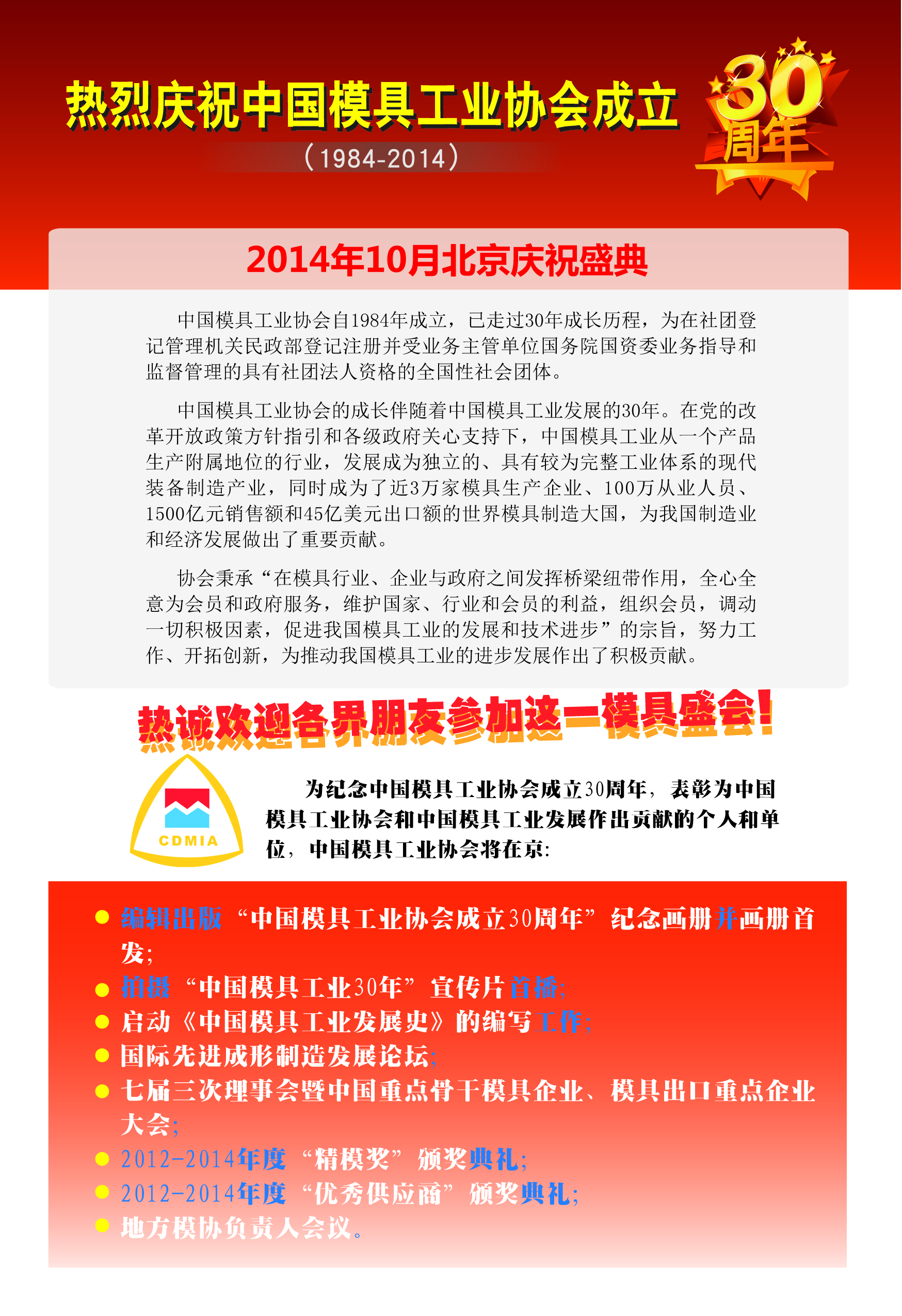 中國模具工業(yè)協(xié)會(huì )成立30周年2014年10月北京慶祝盛典