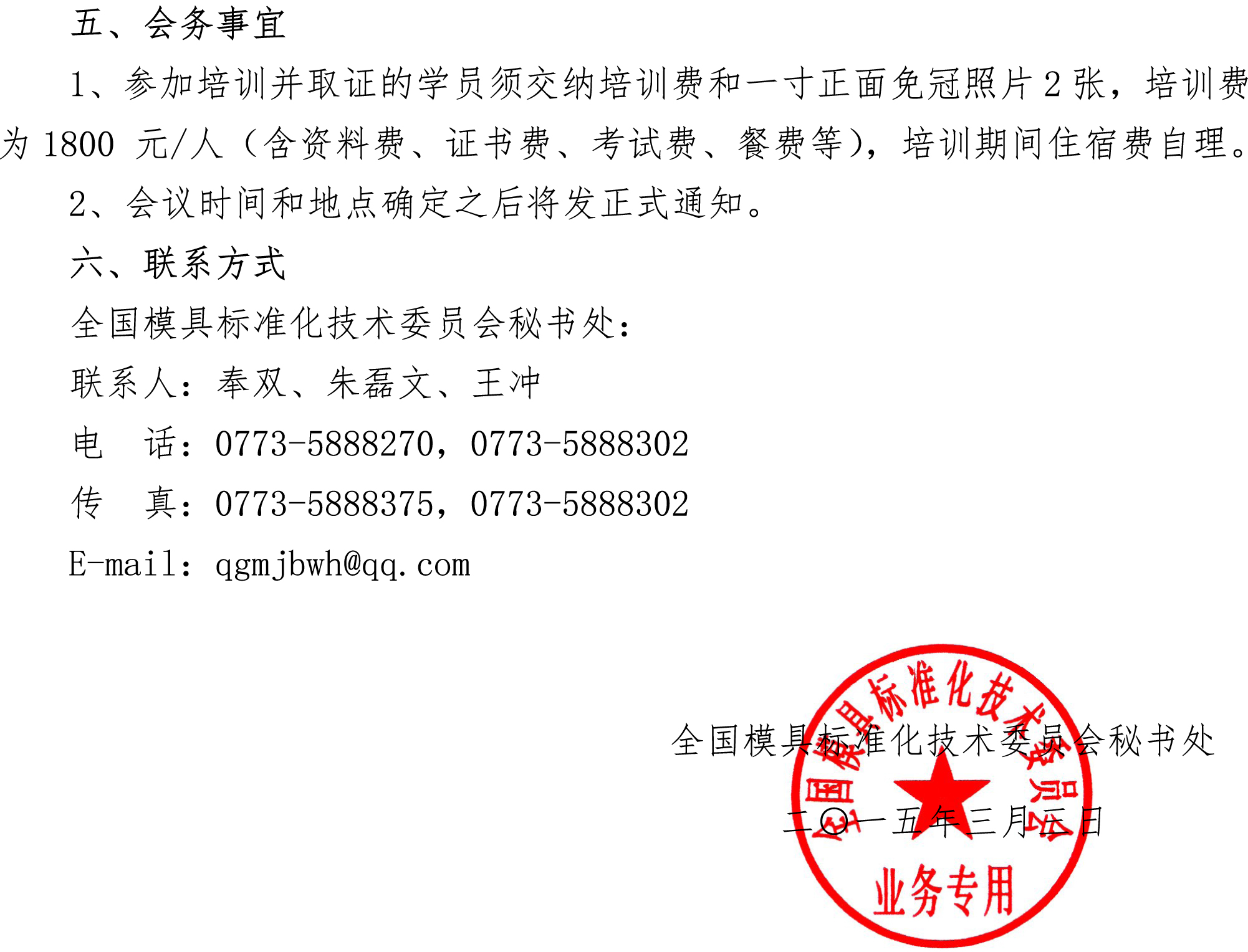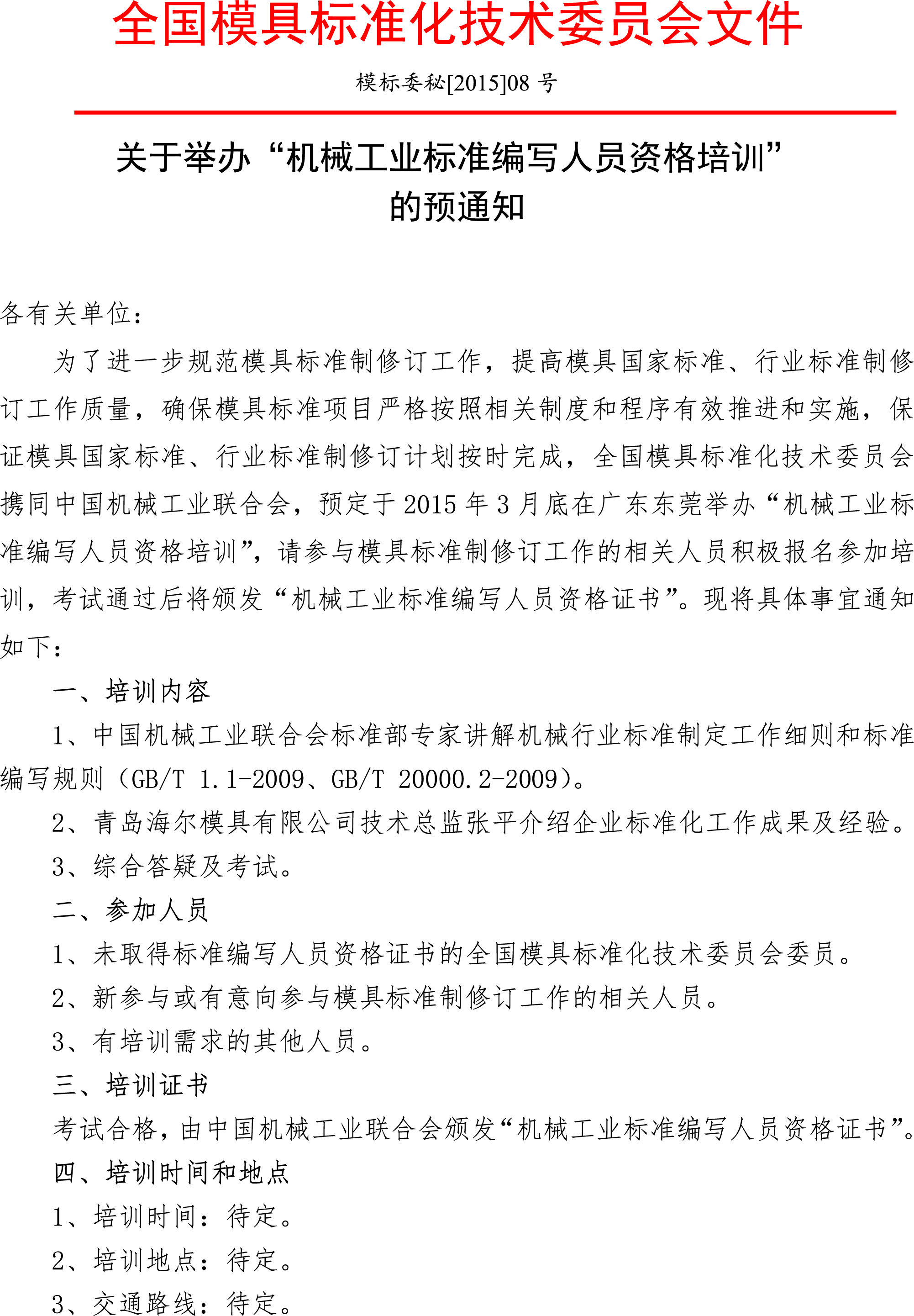 關(guān)于舉辦“機械工業(yè)標準編寫(xiě)人員資格培訓”的預通知