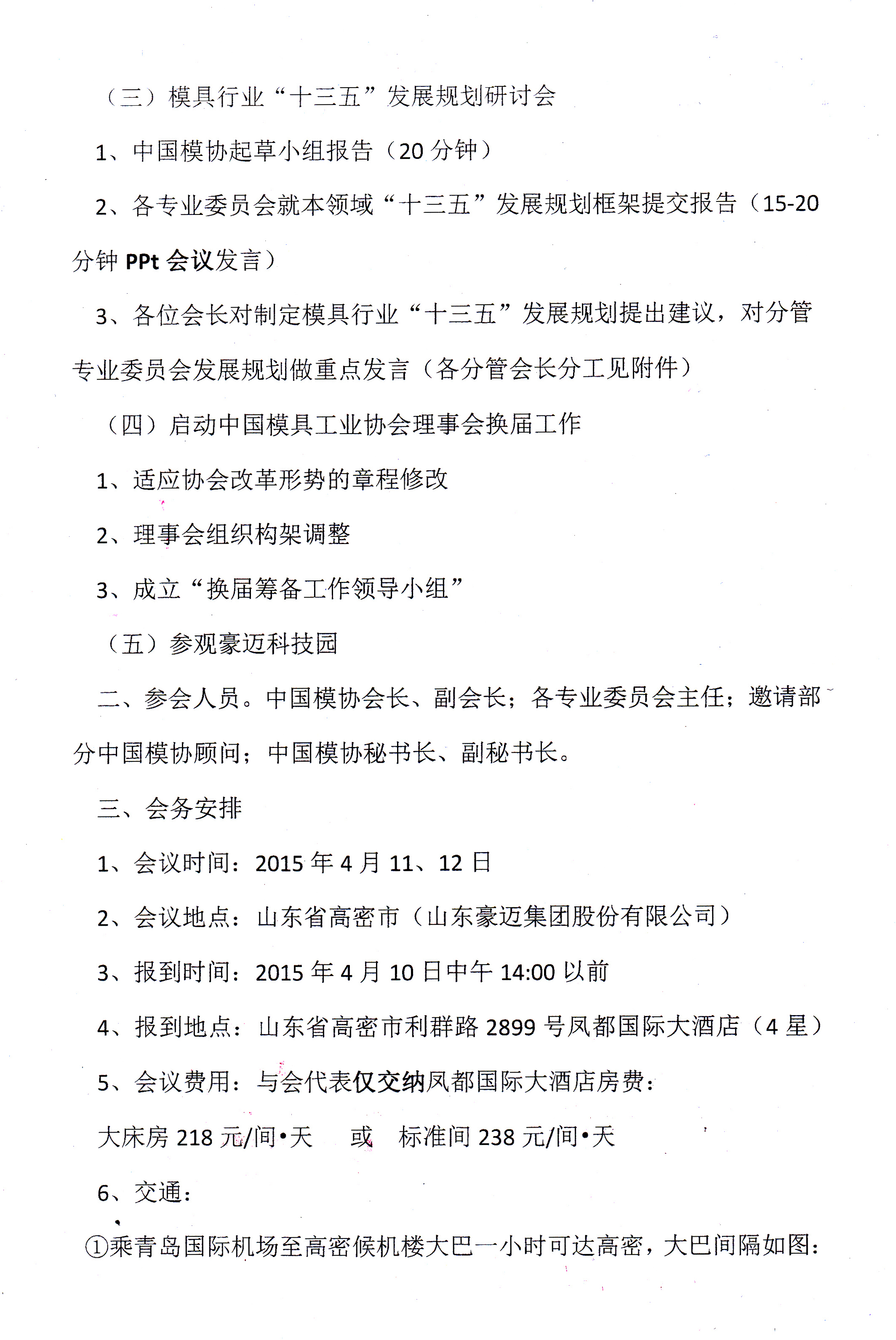 召開(kāi)2015年中國模具工業(yè)協(xié)會(huì )會(huì )長(cháng)會(huì )議暨專(zhuān)業(yè)委員會(huì )主任會(huì )議的通知