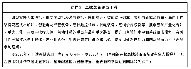 整體推進(jìn),重點(diǎn)突破。堅持制造業(yè)發(fā)展全國一盤(pán)棋和分類(lèi)指導相結合,統籌規劃,合理布局,明確創(chuàng )新發(fā)展方向,促進(jìn)軍民融合深度發(fā)展,加快推動(dòng)制造業(yè)整體水平提升。圍繞經(jīng)濟社會(huì )發(fā)展和國家安全重大需求,整合資源,突出重點(diǎn),實(shí)施若干重大工程,實(shí)現率先突破。