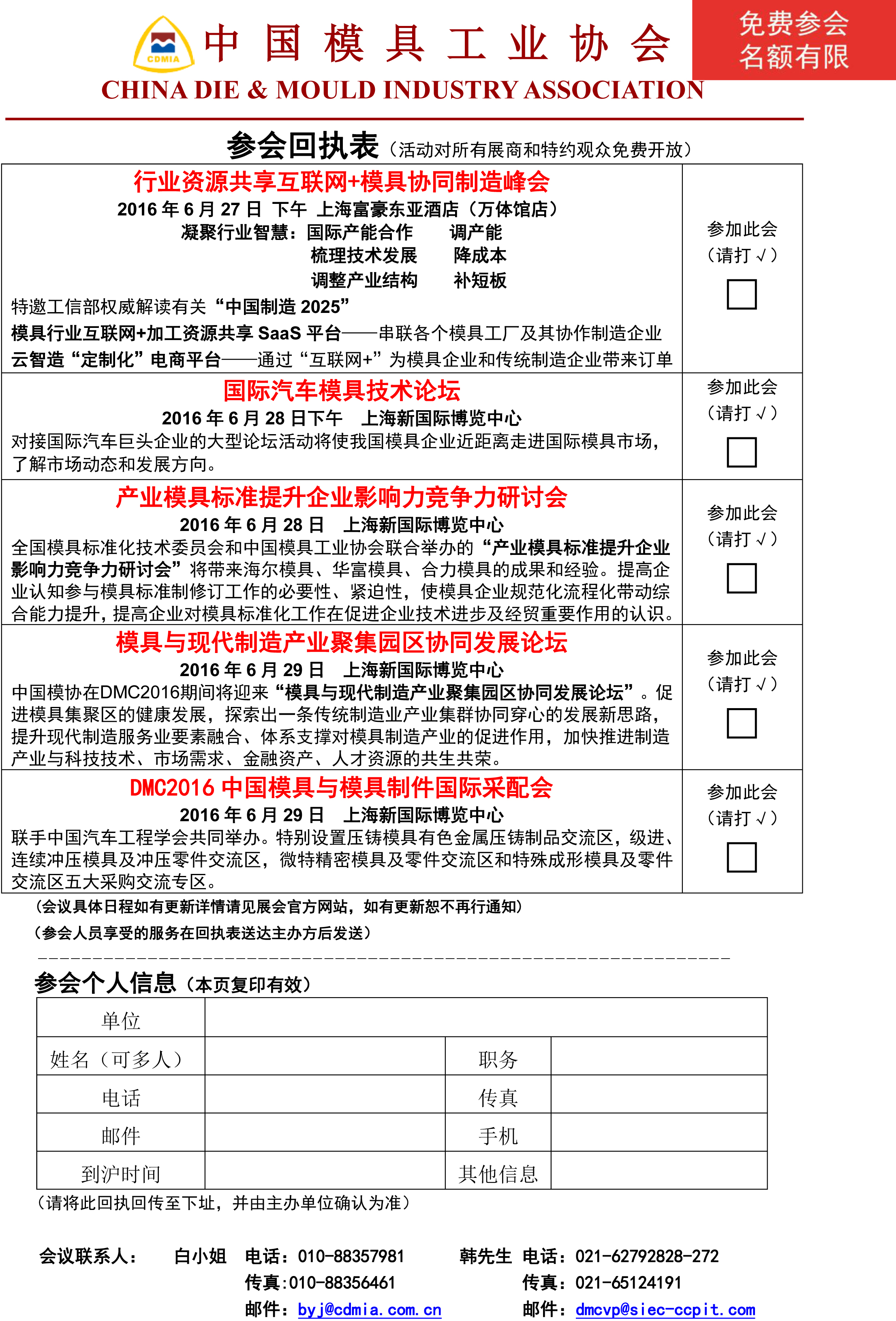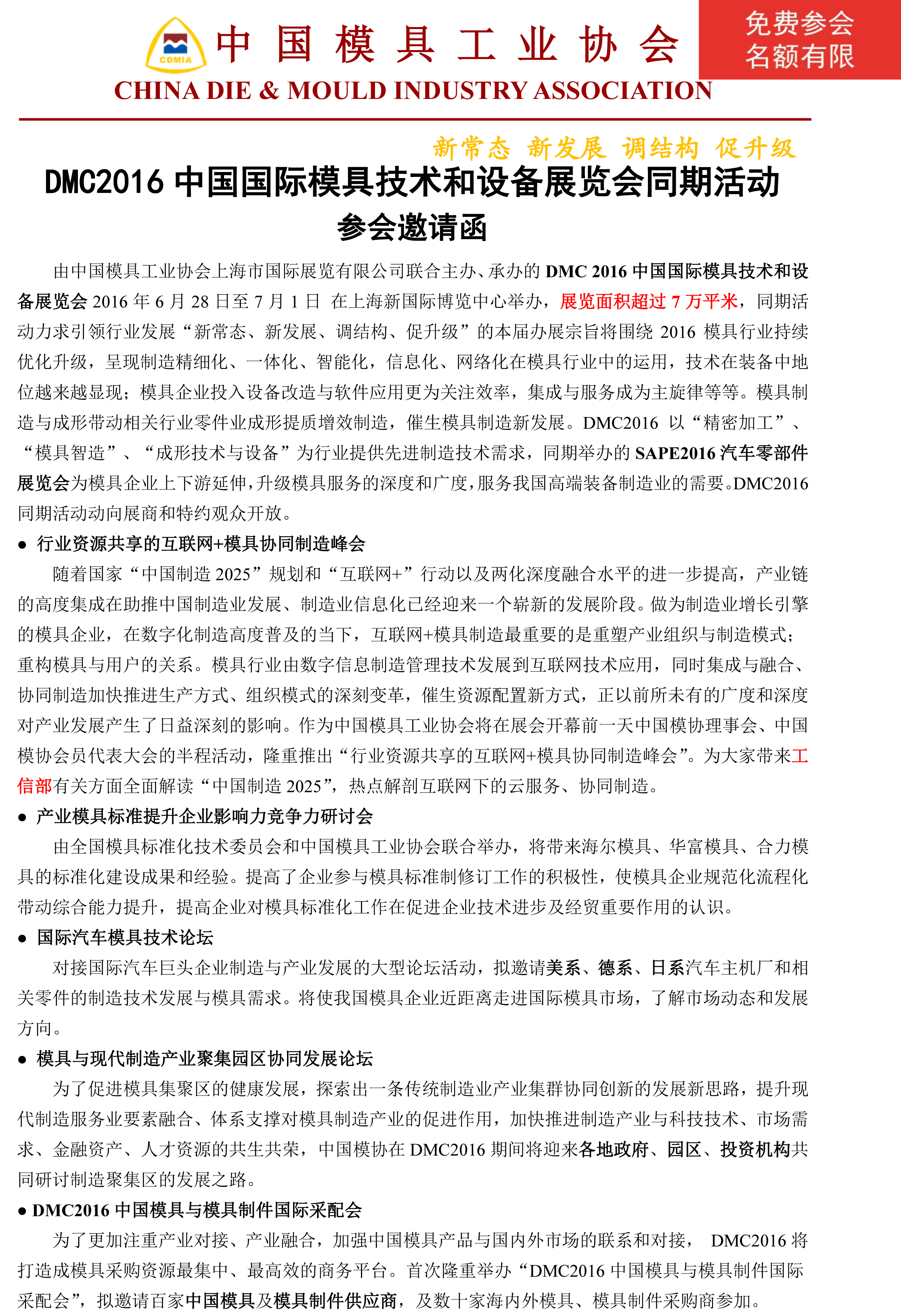 DMC2016中國國際模具技術(shù)和設備展覽會(huì )同期活動(dòng) 參會(huì )邀請函