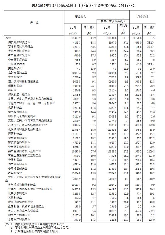 2017年1-2月份全國規模以上工業(yè)企業(yè)利潤總額同比增長(cháng)31.5%(附圖)
