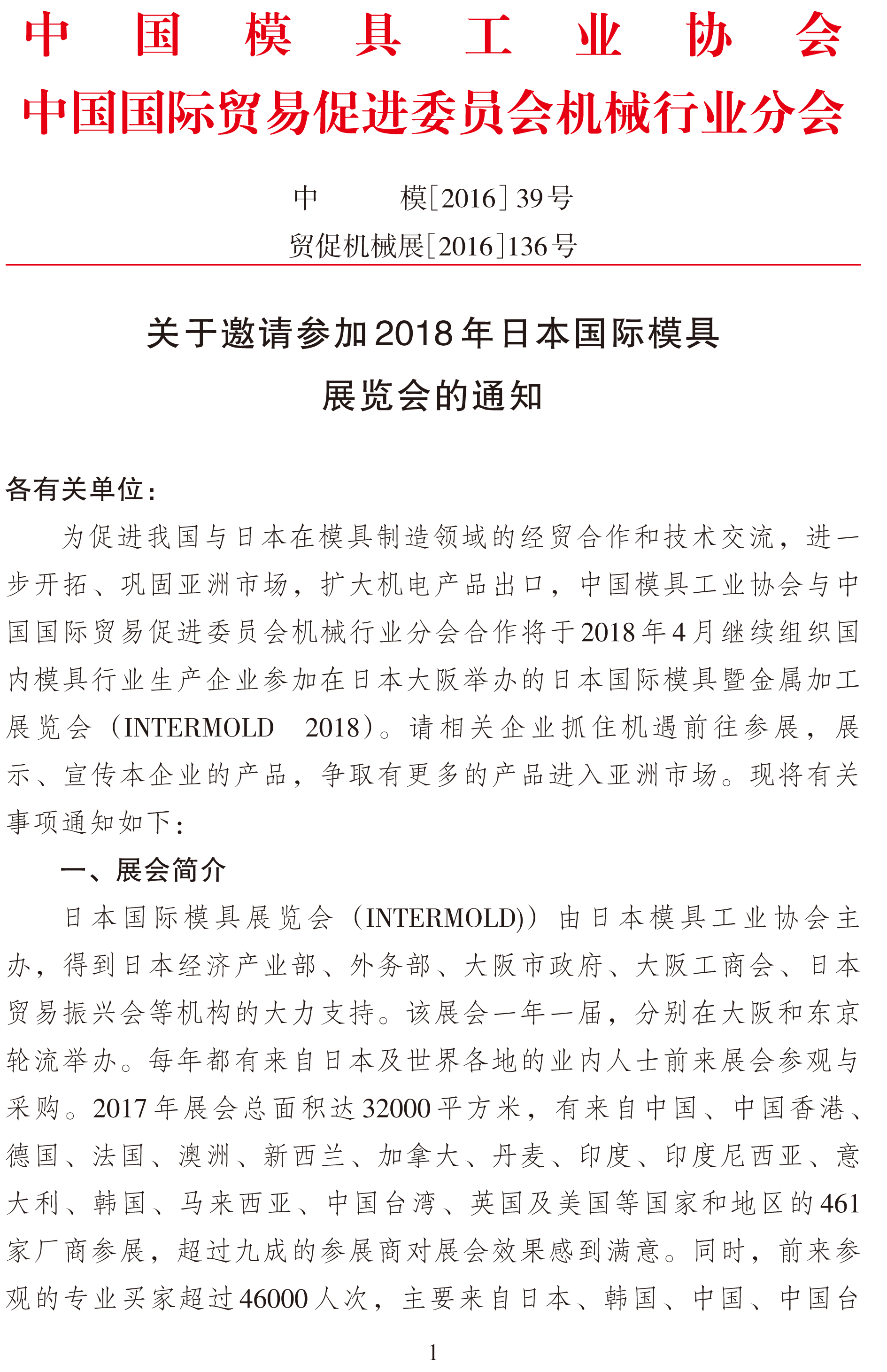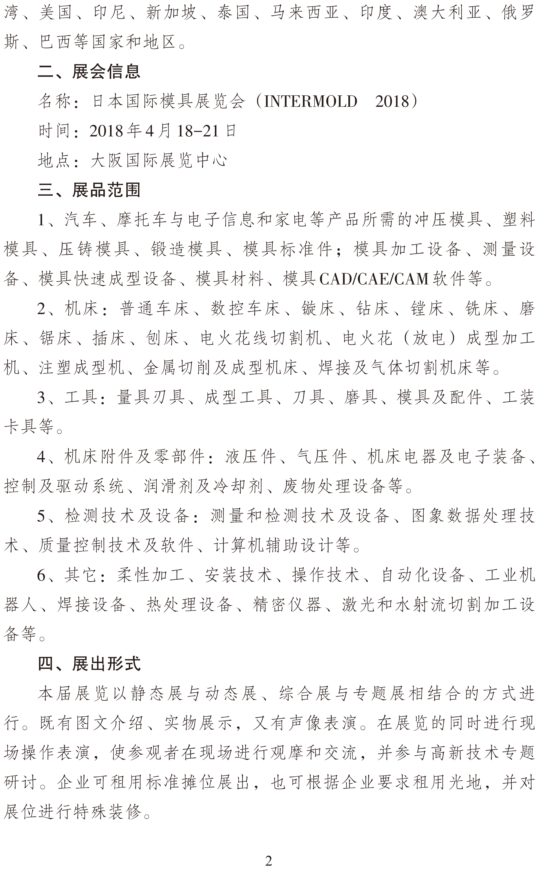 關(guān)于邀請參加2018年日本國際模具展覽會(huì )的通知