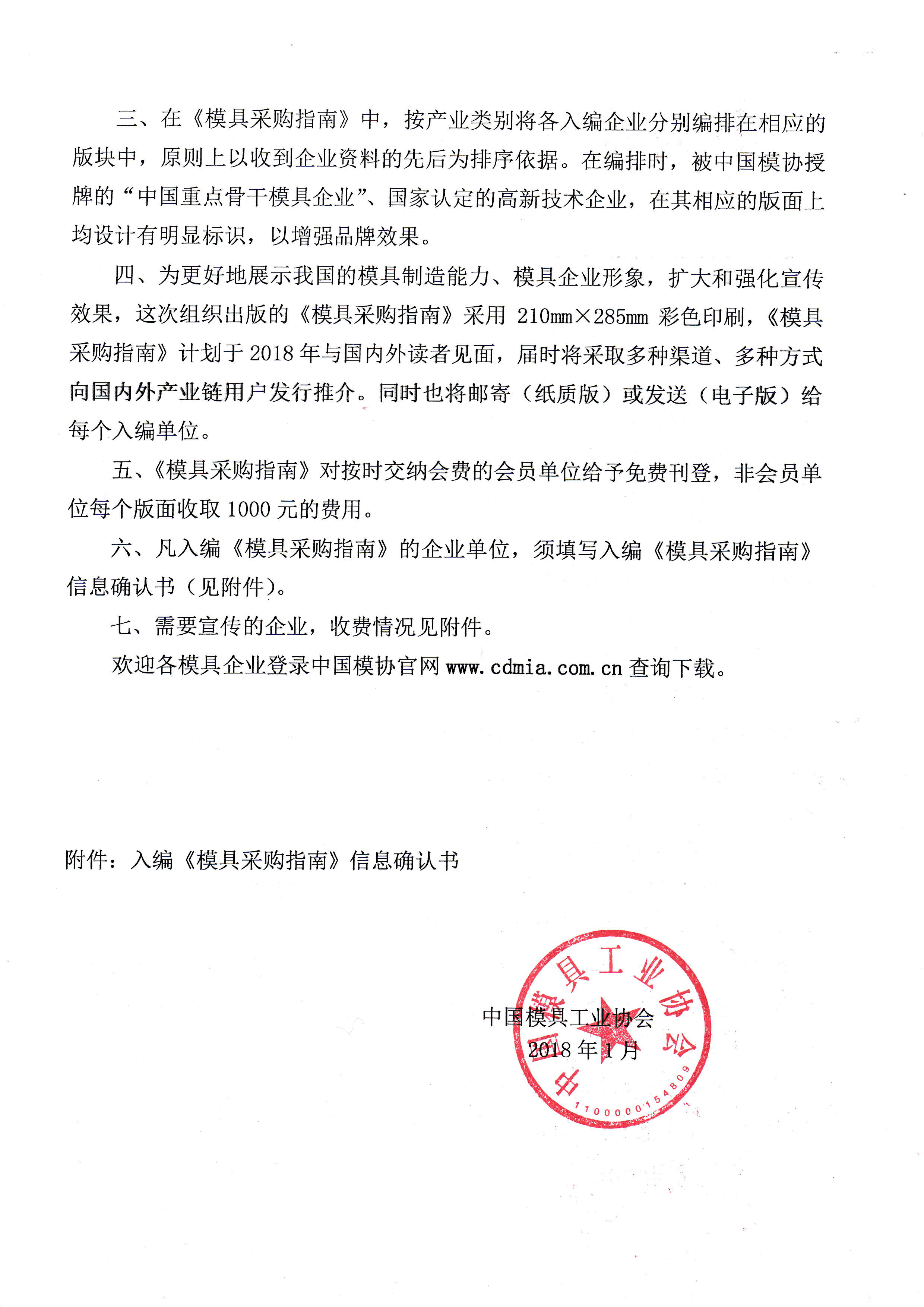 關(guān)于編輯出版《模具采購指南》與企業(yè)資料入編工作的通知