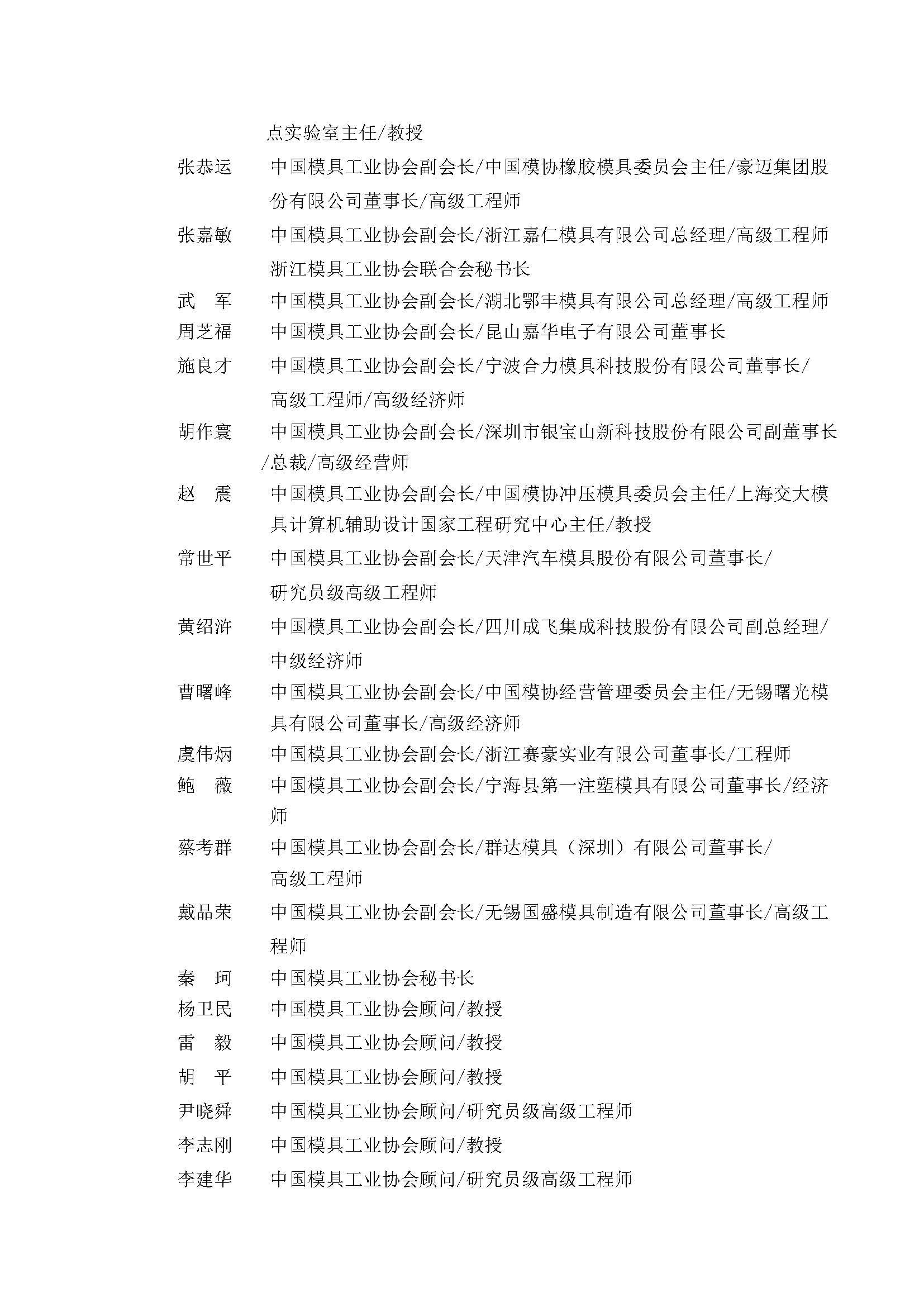 模具行業(yè)信用評價(jià)工作組織機構名單