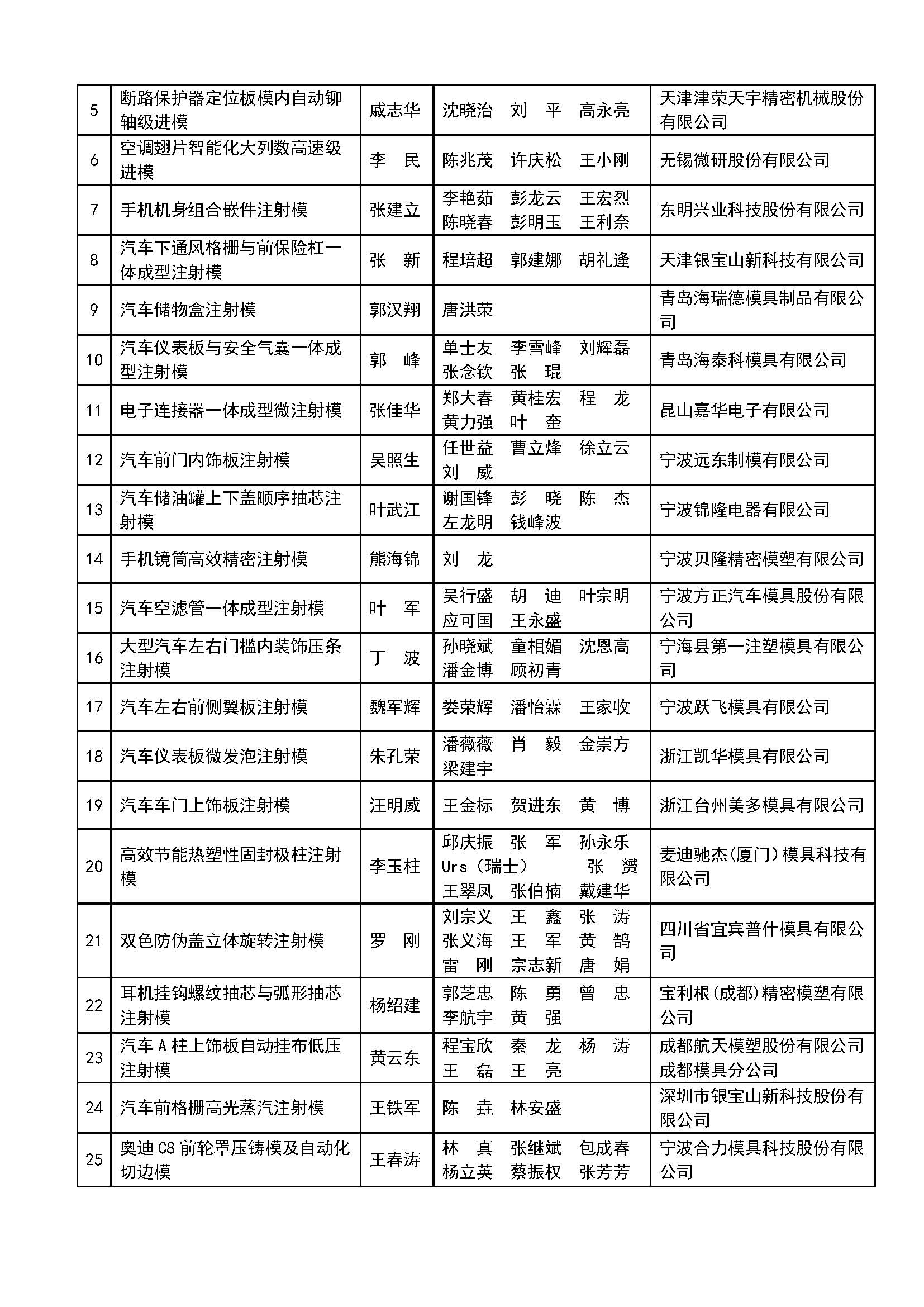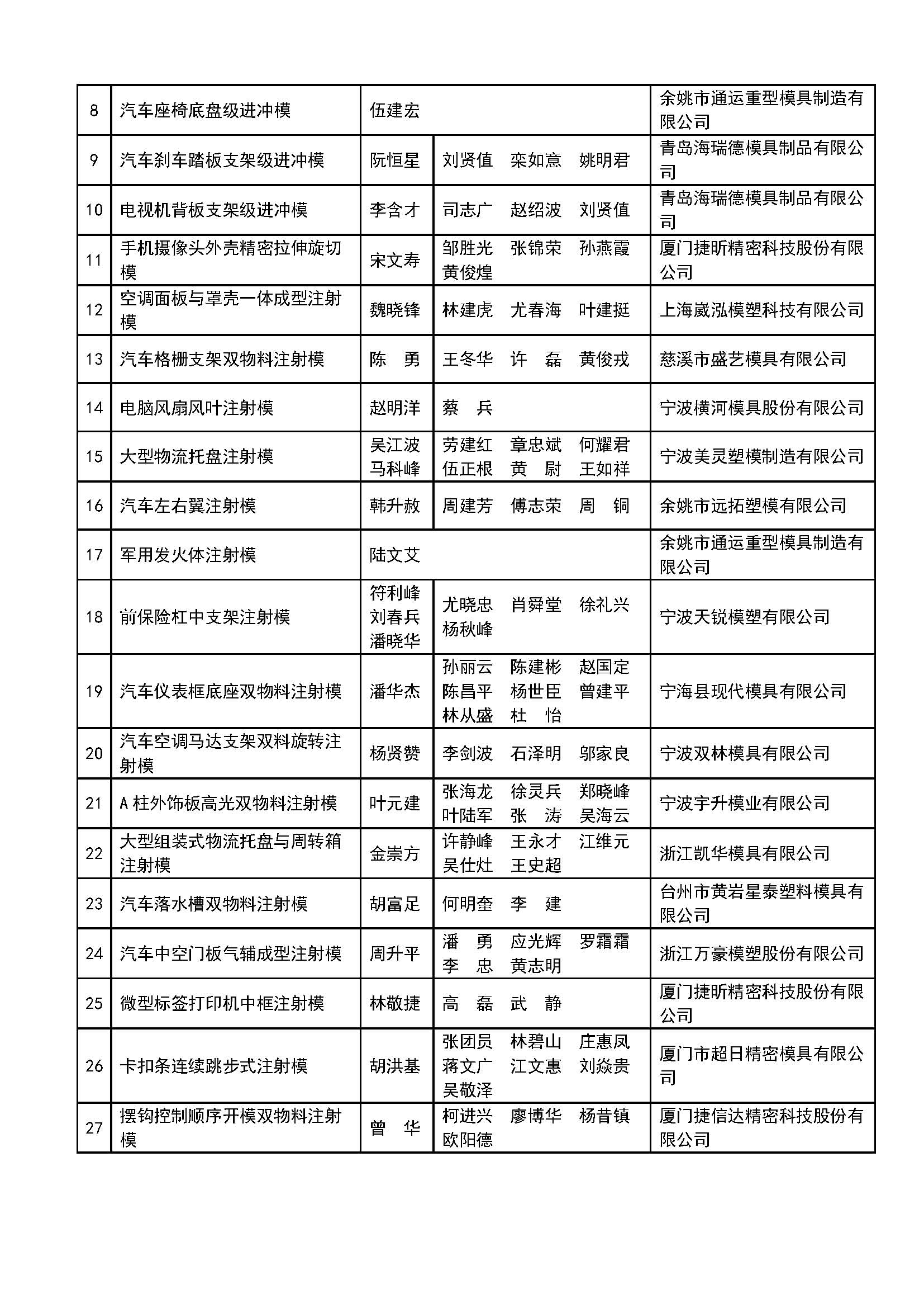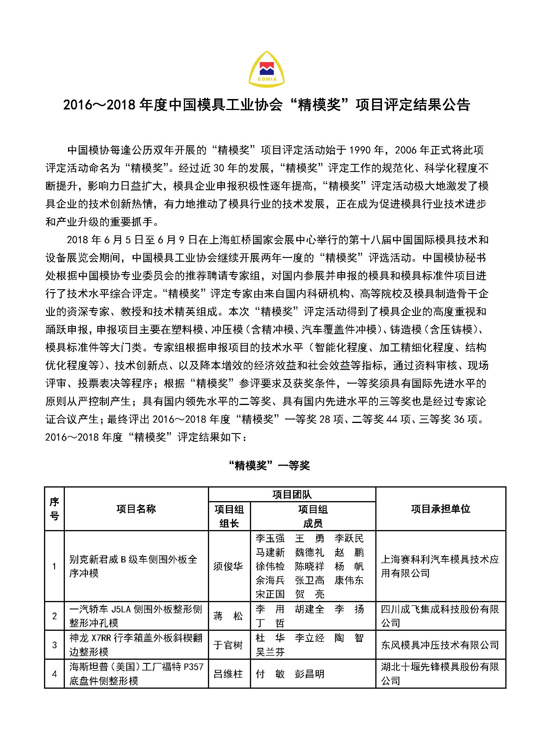 2016~2018年度中國模具工業(yè)協(xié)會(huì )“精模獎”項目評定結果公告