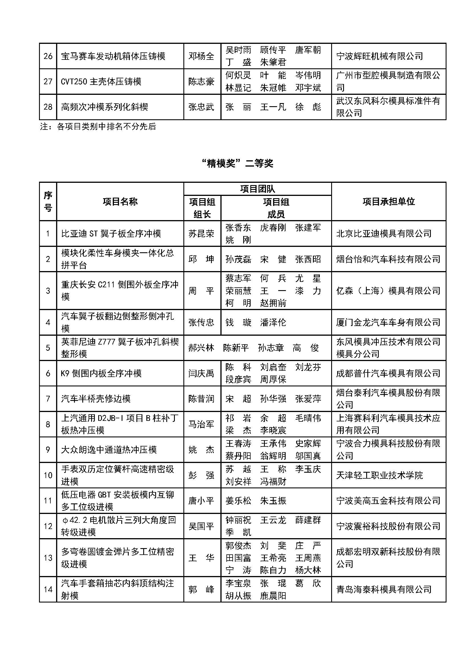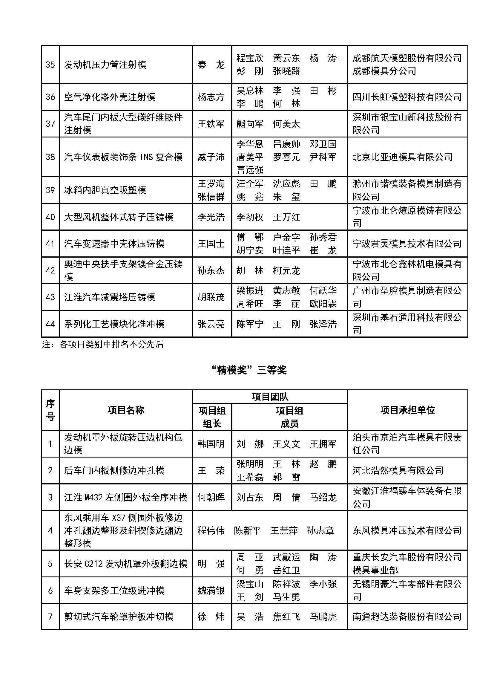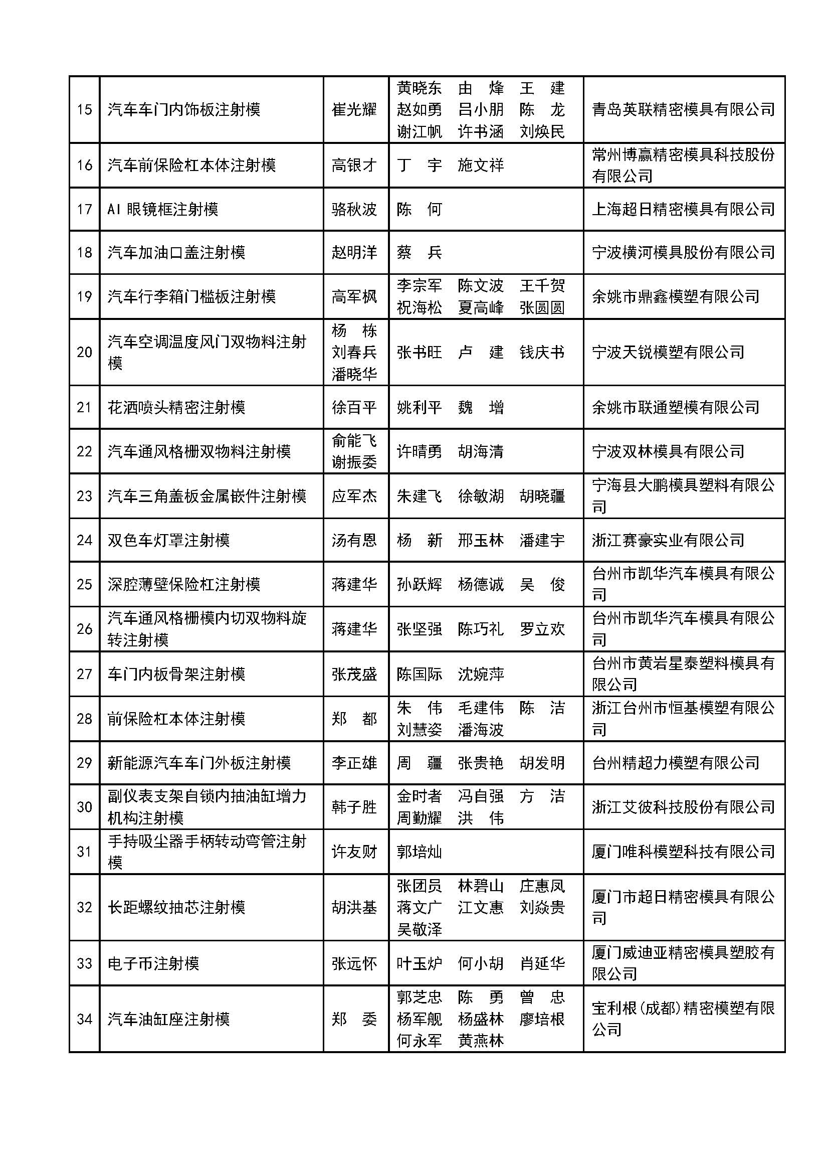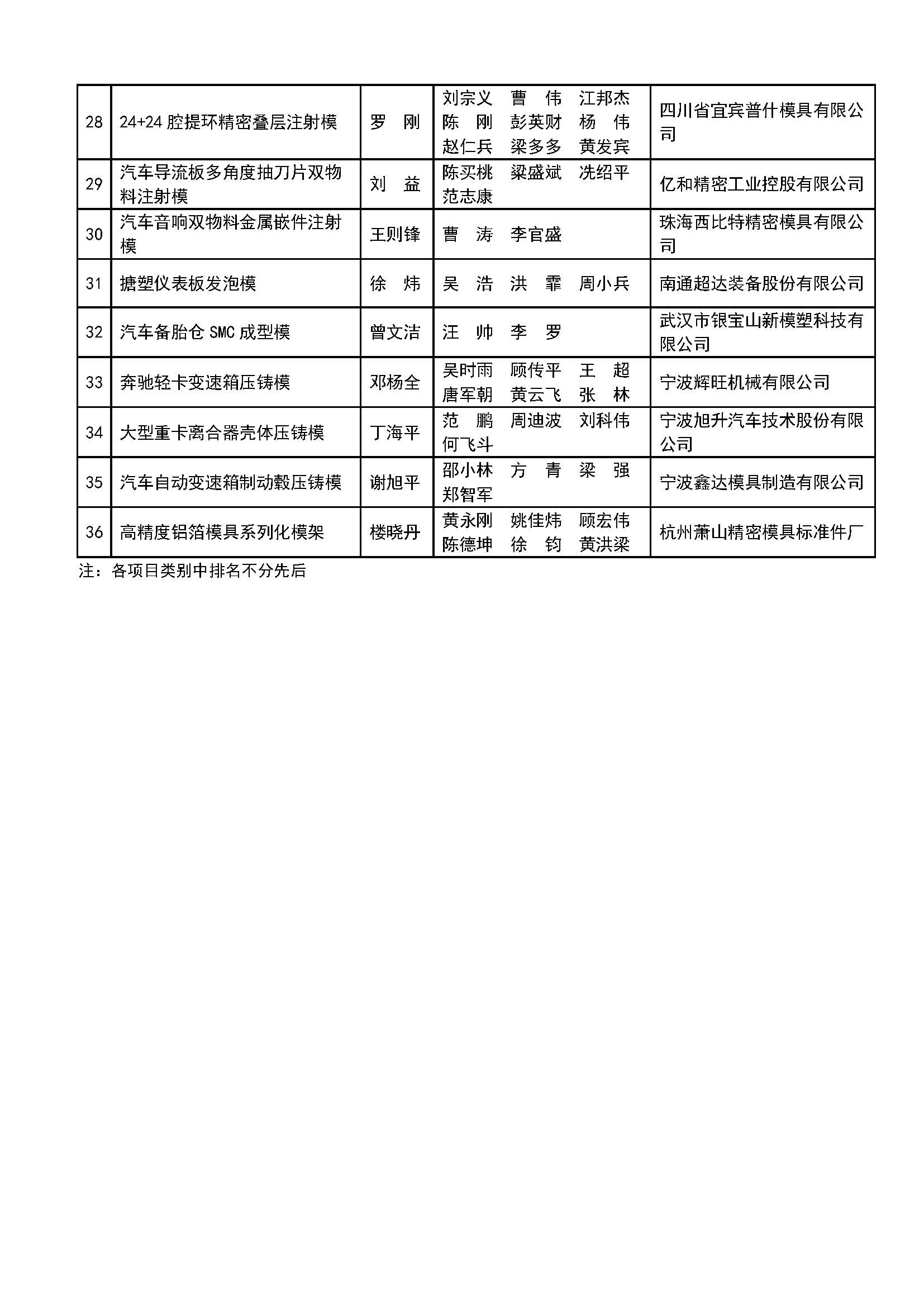 2016~2018年度中國模具工業(yè)協(xié)會(huì )“精模獎”項目評定結果公告