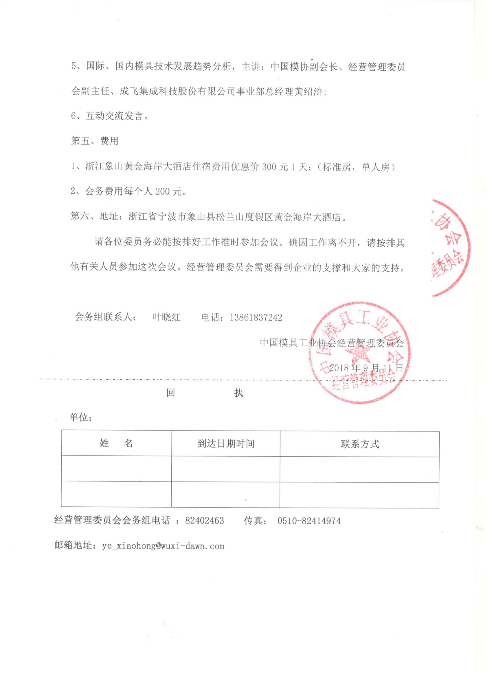 關(guān)于召開(kāi)2018年度中國模具工業(yè)協(xié)會(huì )經(jīng)營(yíng)管理委員會(huì )會(huì )議通知