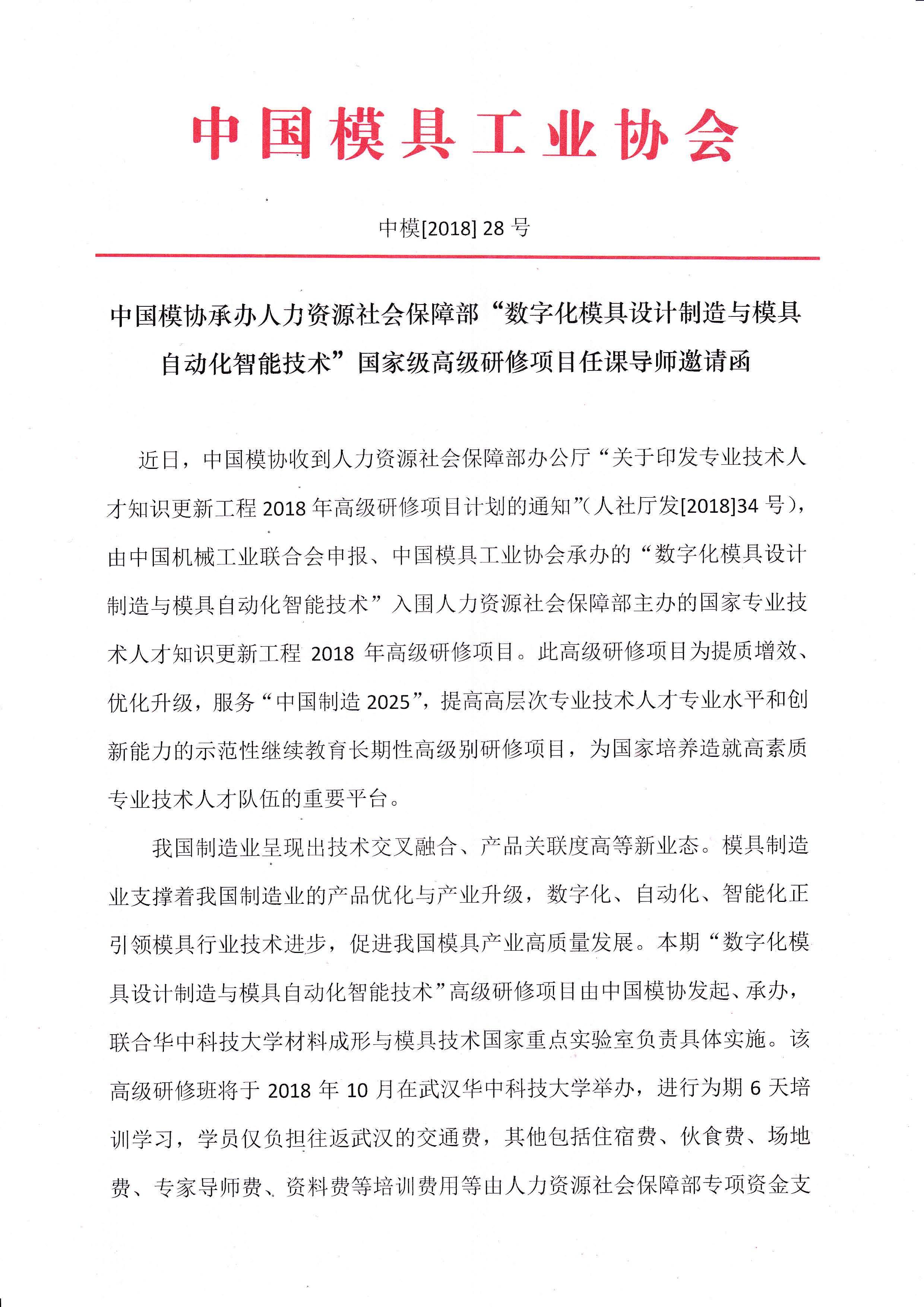 中國模協(xié)承辦人力資源社會(huì )保障部高級研修項目任課導師邀請函