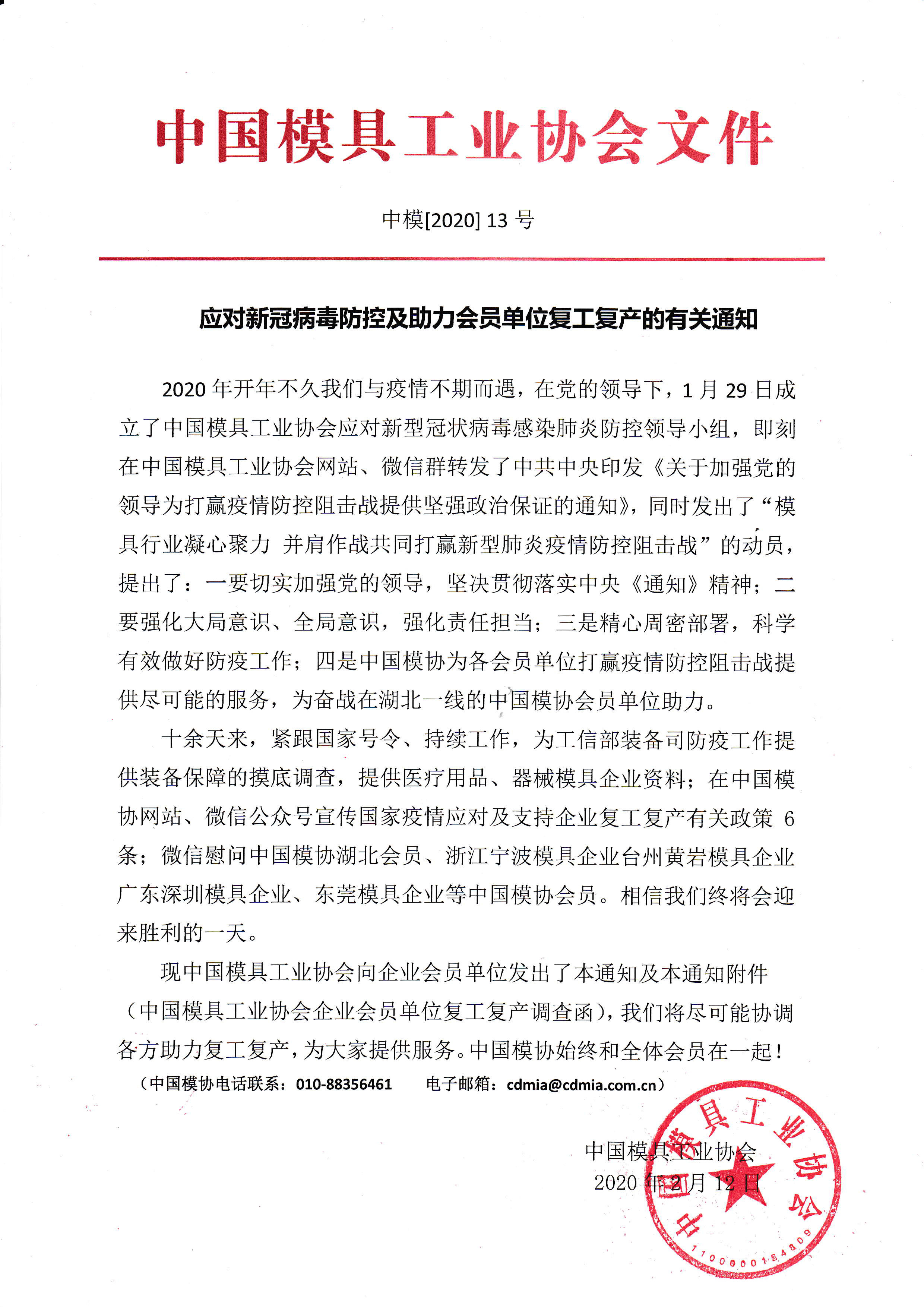 應對新冠病毒防控及助力會(huì )員單位復工復產(chǎn)的有關(guān)通知