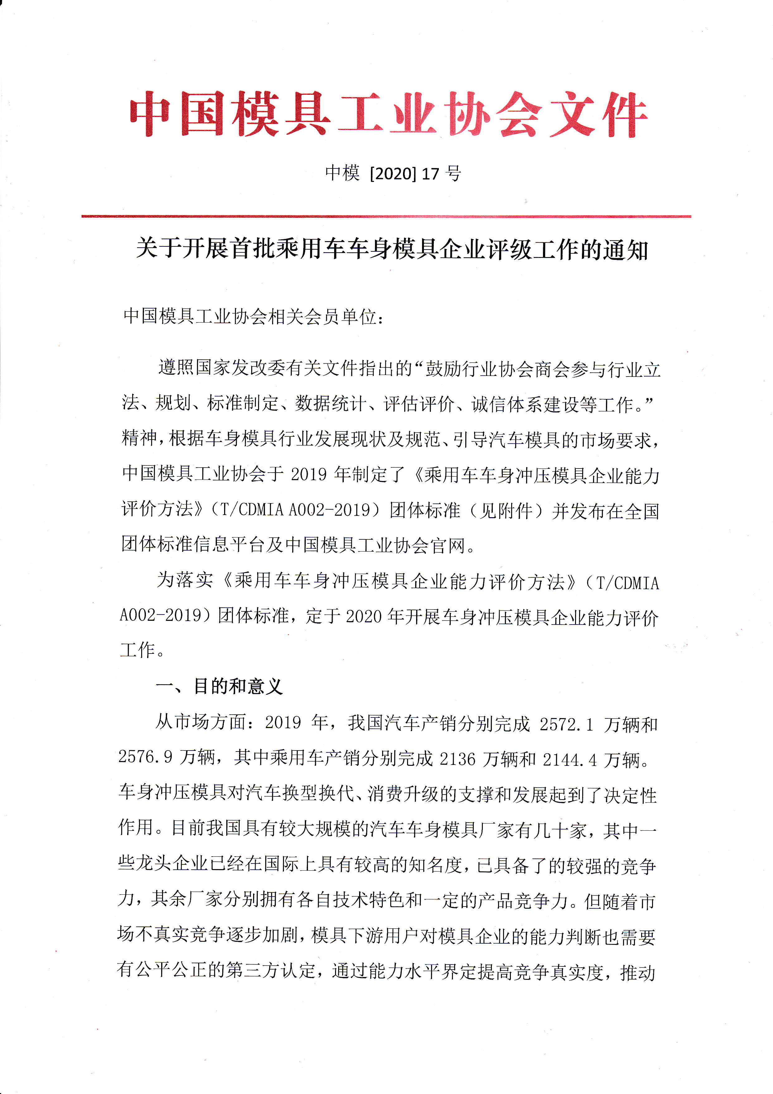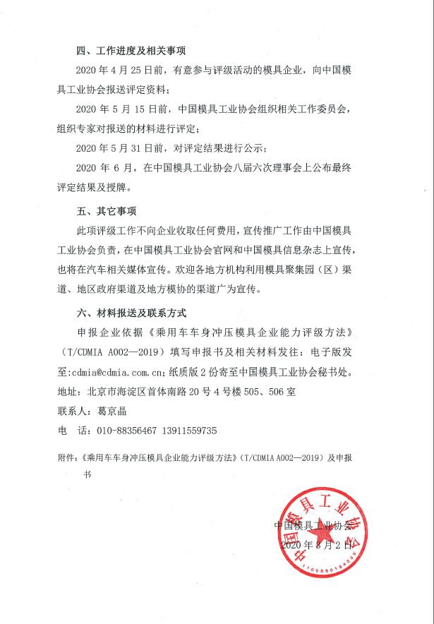 關(guān)于開(kāi)展首批乘用車(chē)車(chē)身模具企業(yè)評級工作的通知