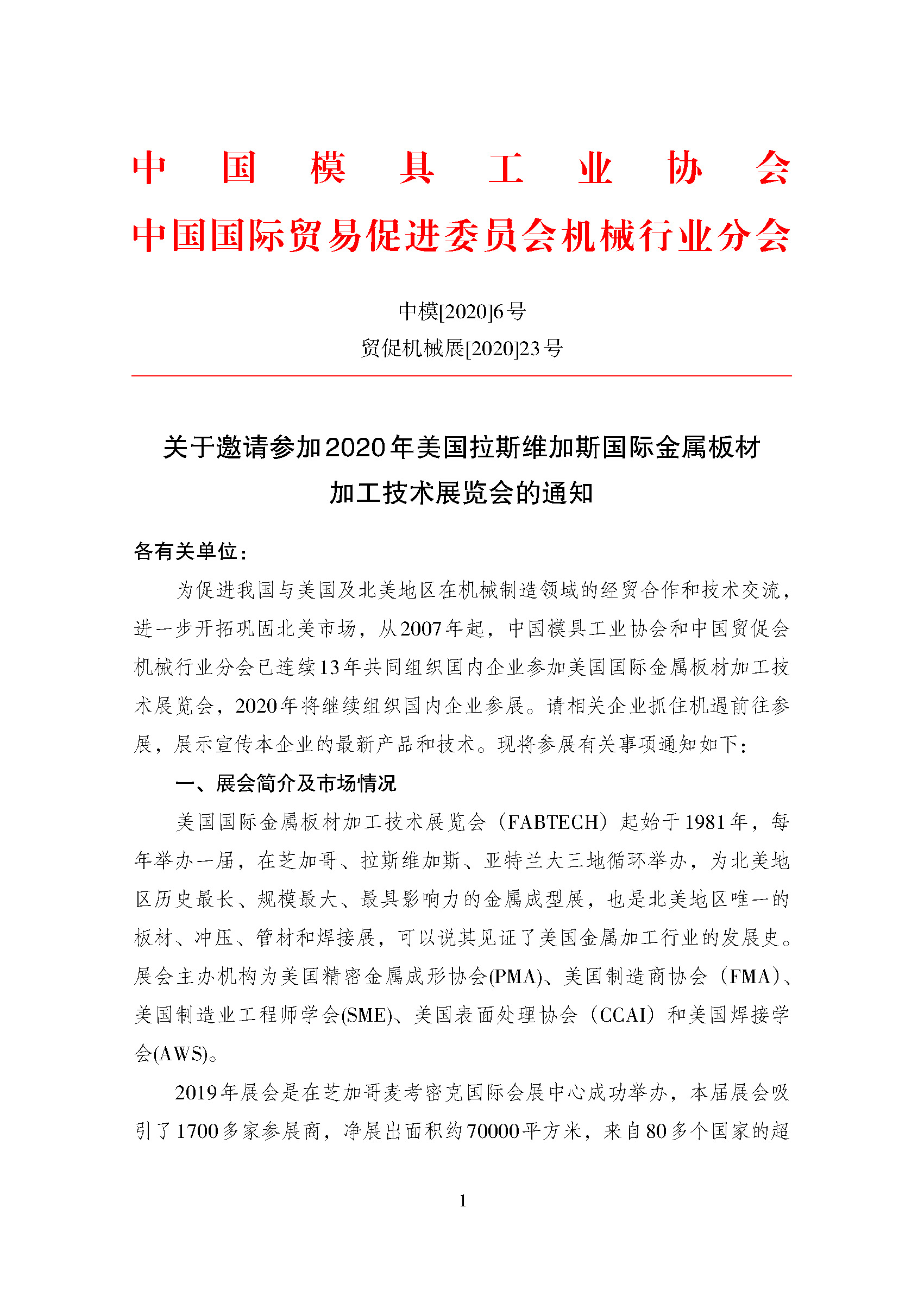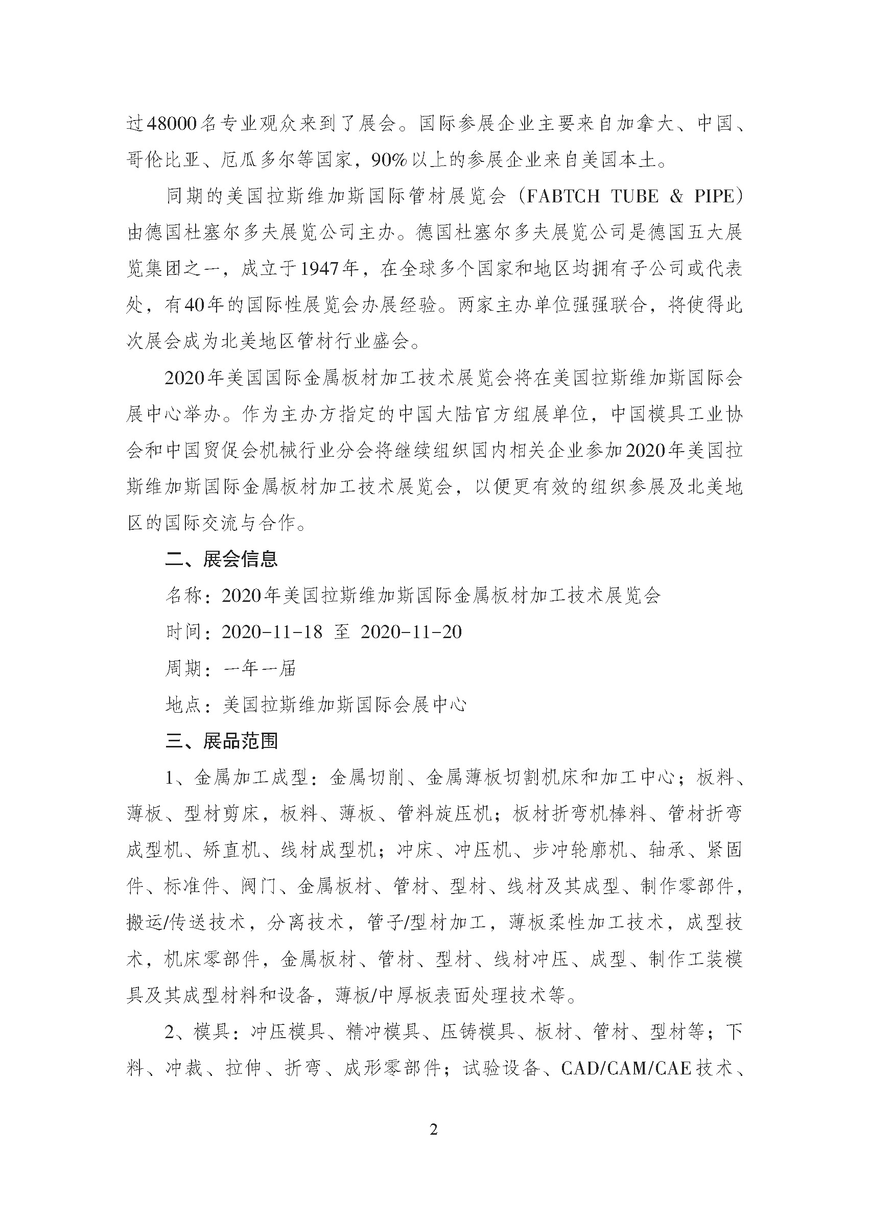 關(guān)于邀請參加2020年美國拉斯維加斯國際金屬板材加工技術(shù)展覽會(huì )的通知