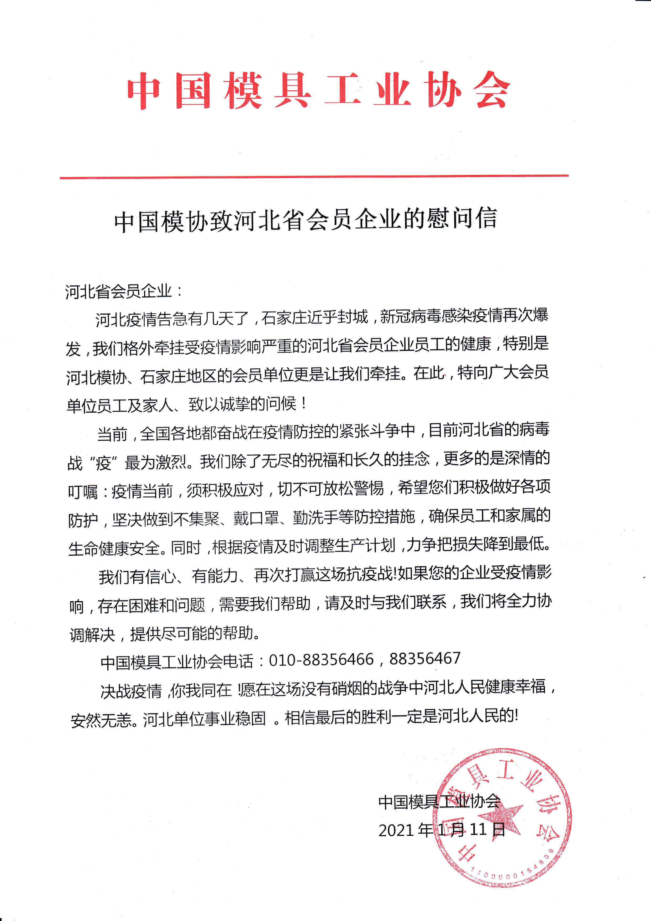 中國模協(xié)致河北省會(huì )員企業(yè)的慰問(wèn)信