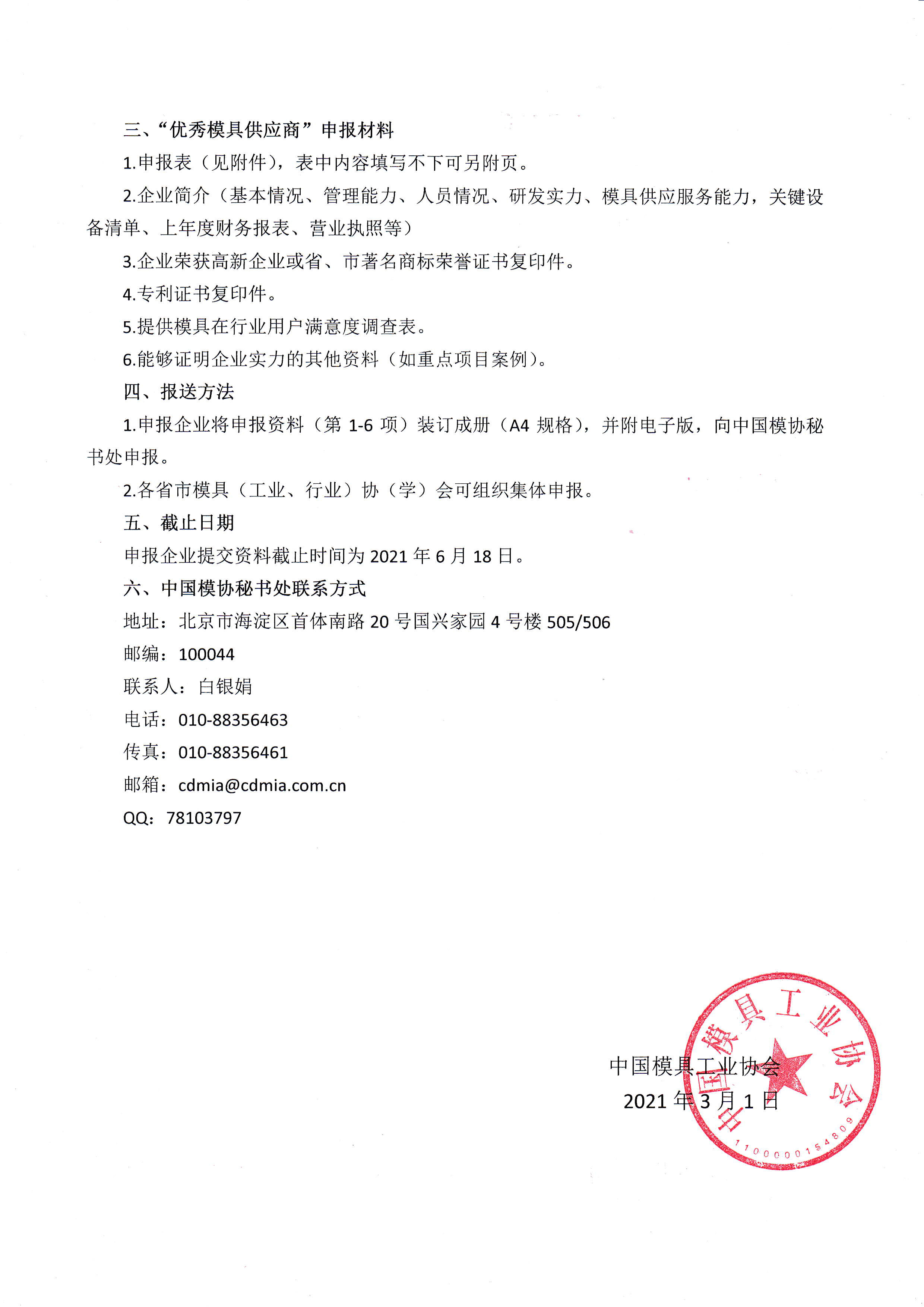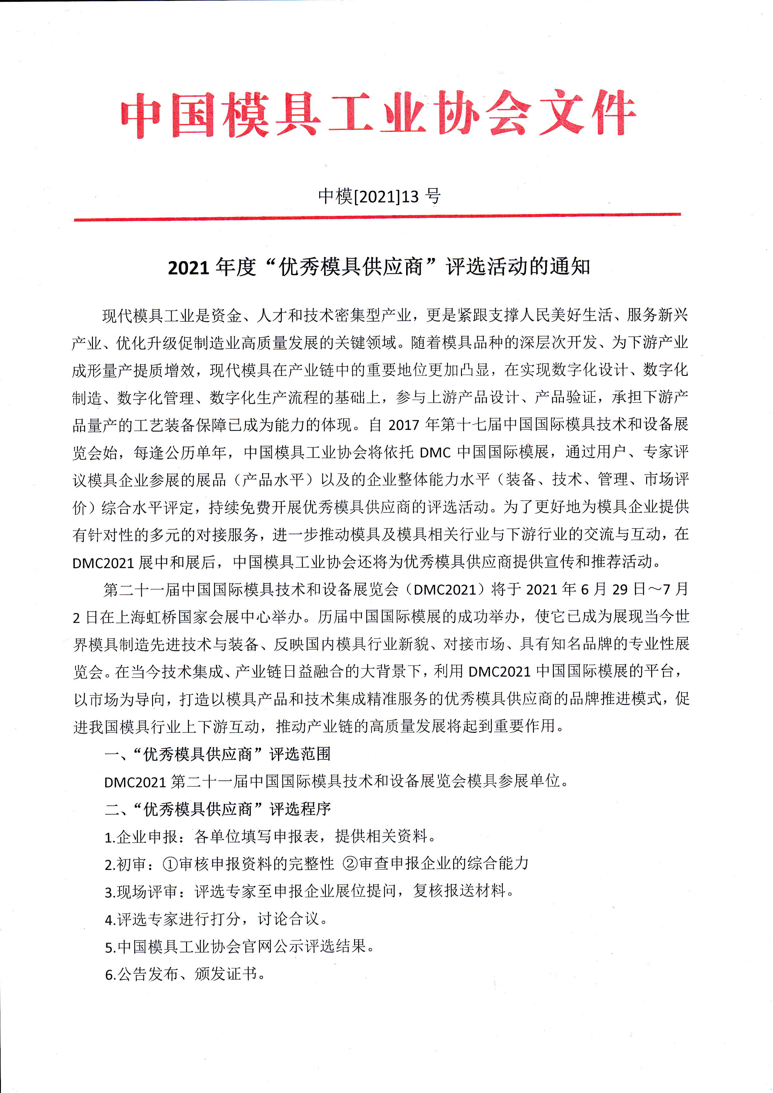 2021年度“優(yōu)秀模具供應商”評選活動(dòng)的通知