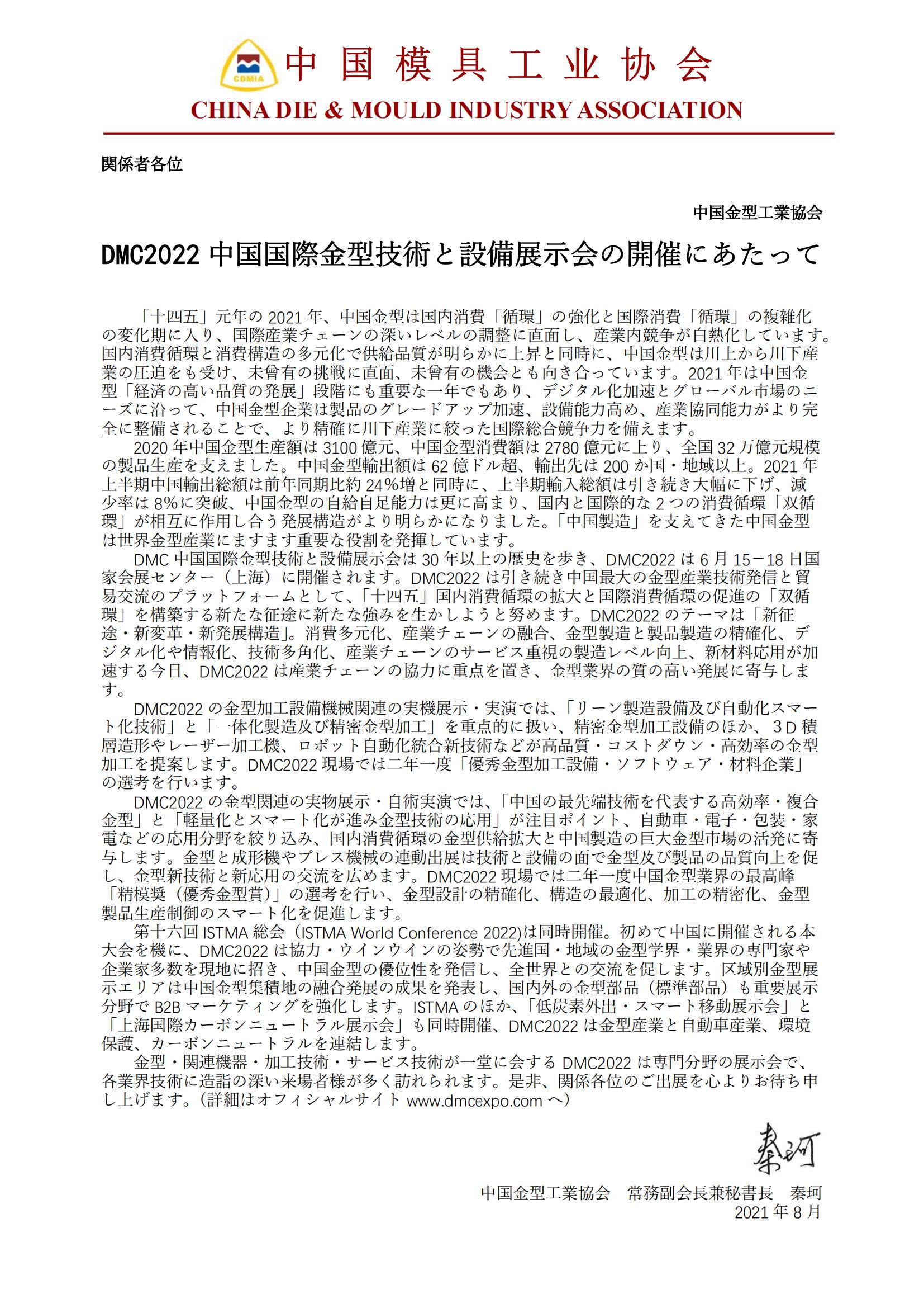 DMC2022 中國國際金型技術(shù)と設備展示會(huì )の開(kāi)催にあたって