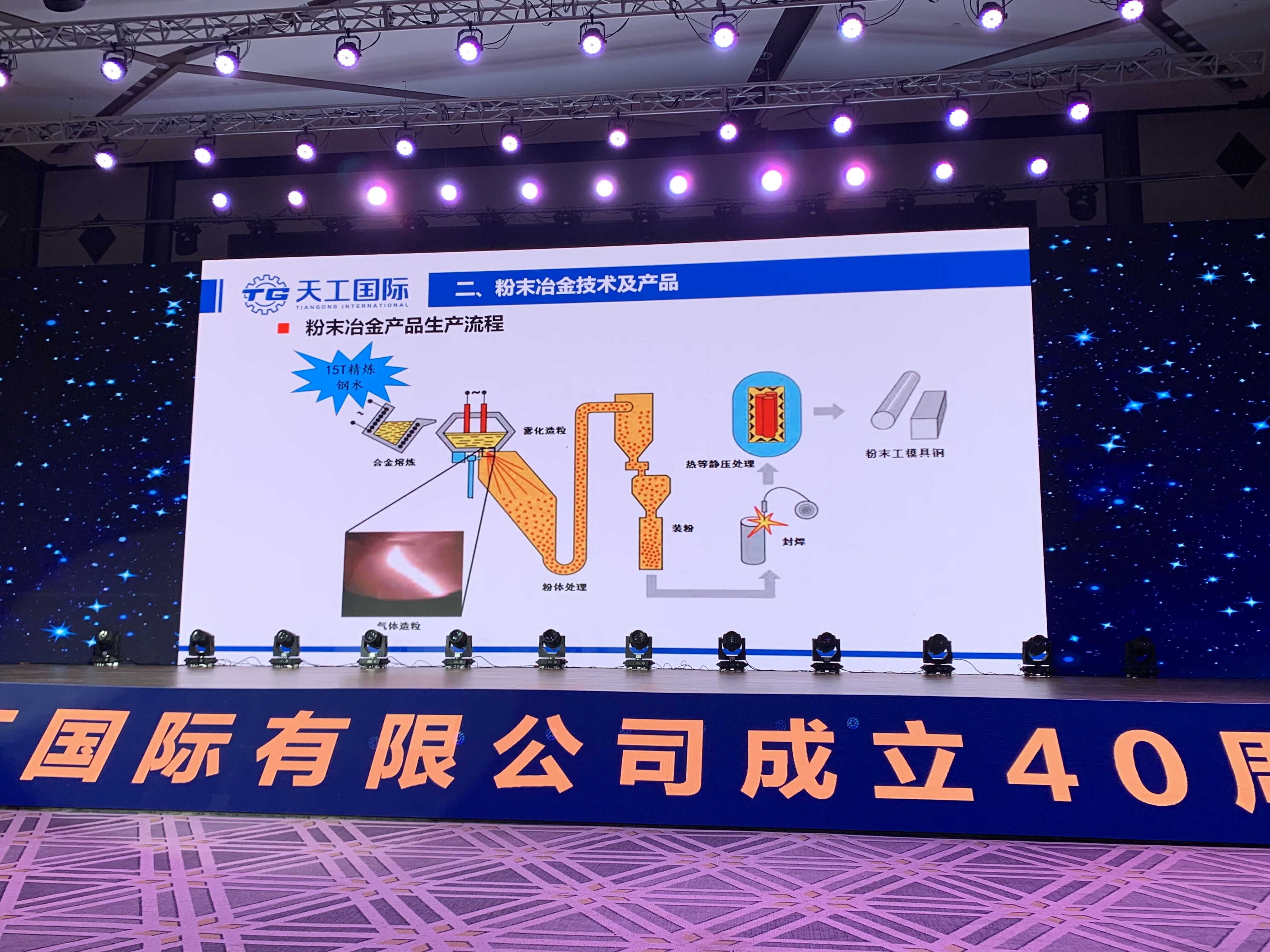 天工國際副總經(jīng)理、首席技術(shù)官廖俊介紹天工“高合金粉末工模具鋼高端模具鋼”的粉末冶金技術(shù)及產(chǎn)品