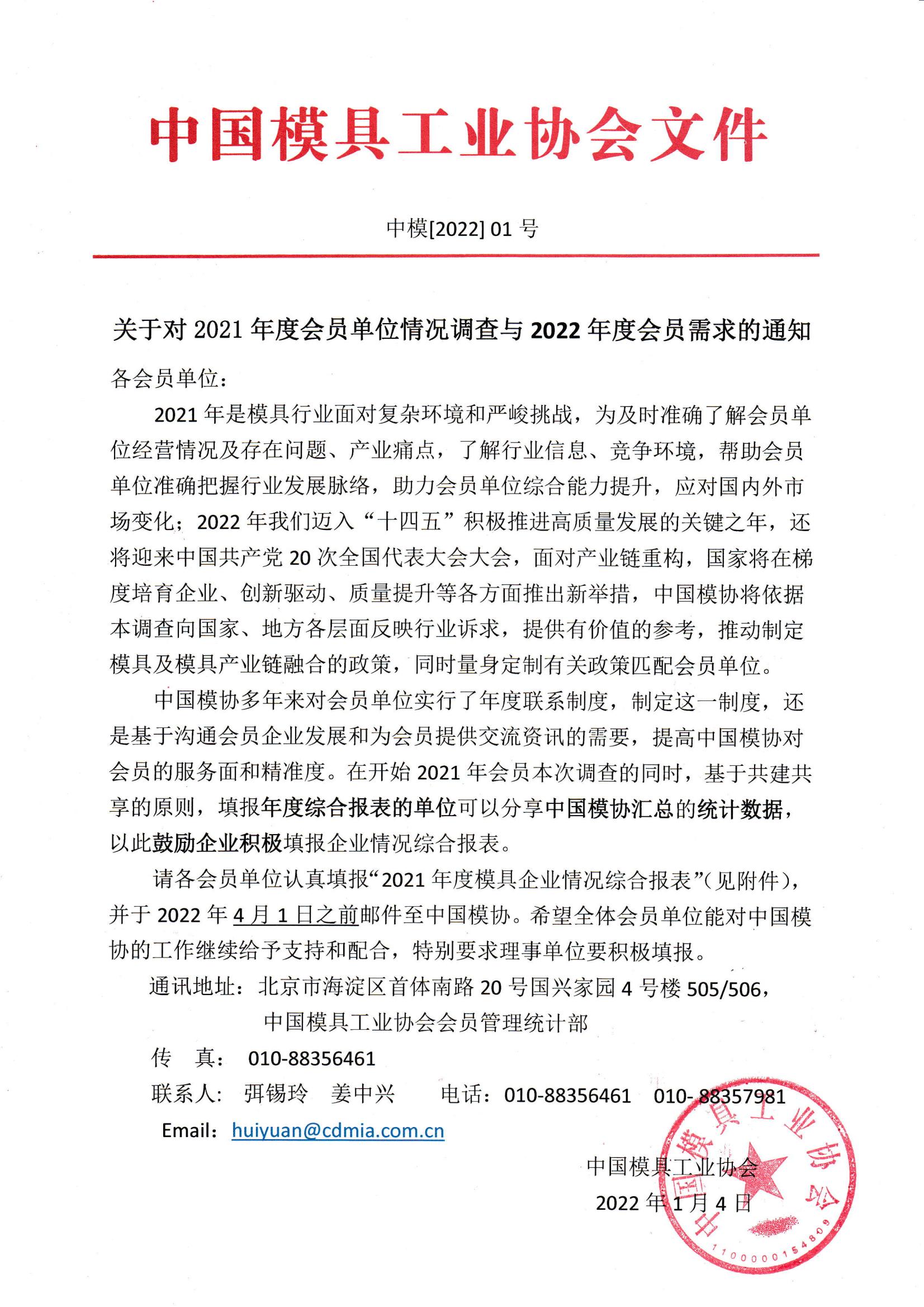 關(guān)于對2021年度會(huì )員單位情況調查與2022年度會(huì )員需求的通知