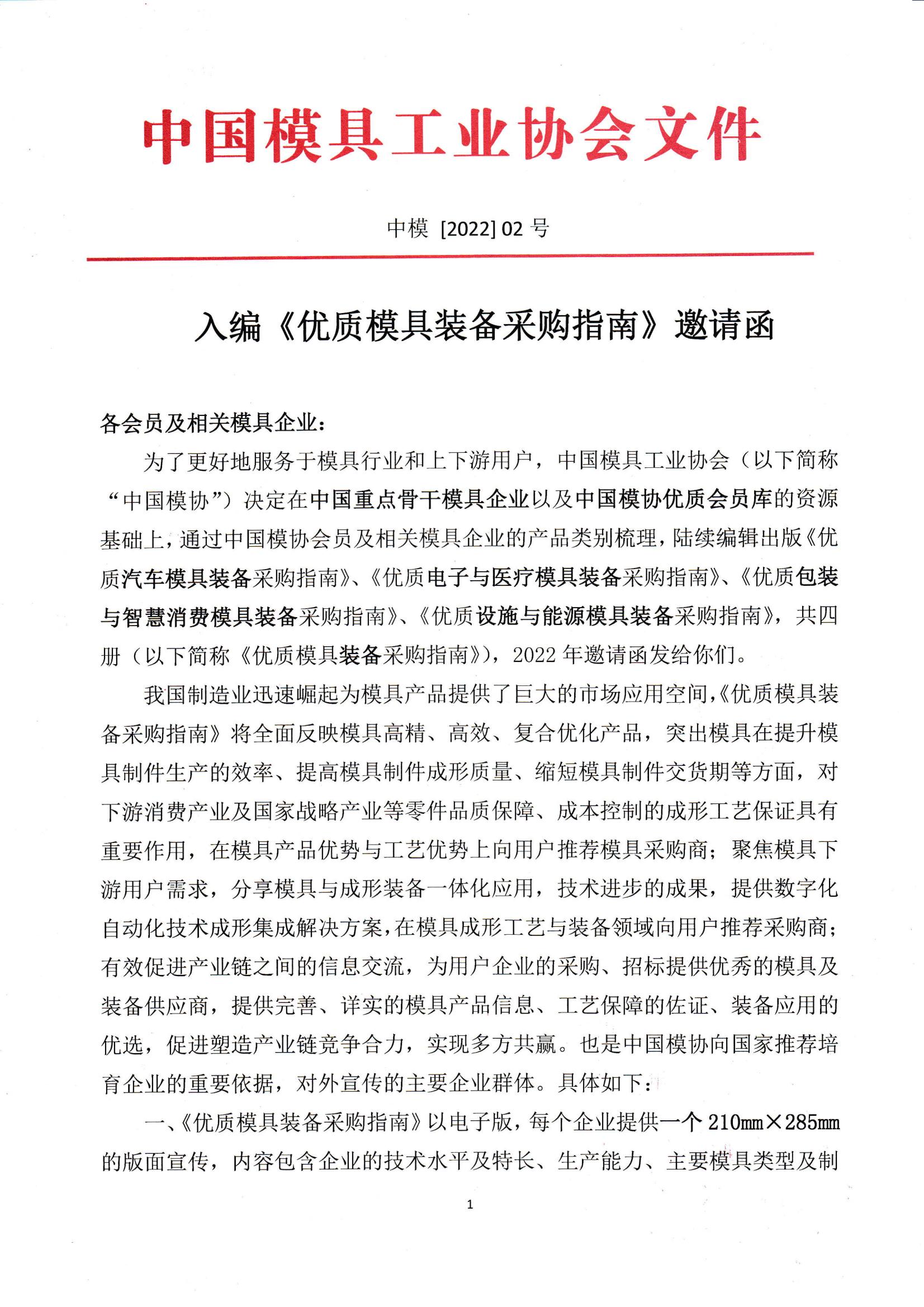 入編《優(yōu)質(zhì)模具裝備采購指南》邀請函