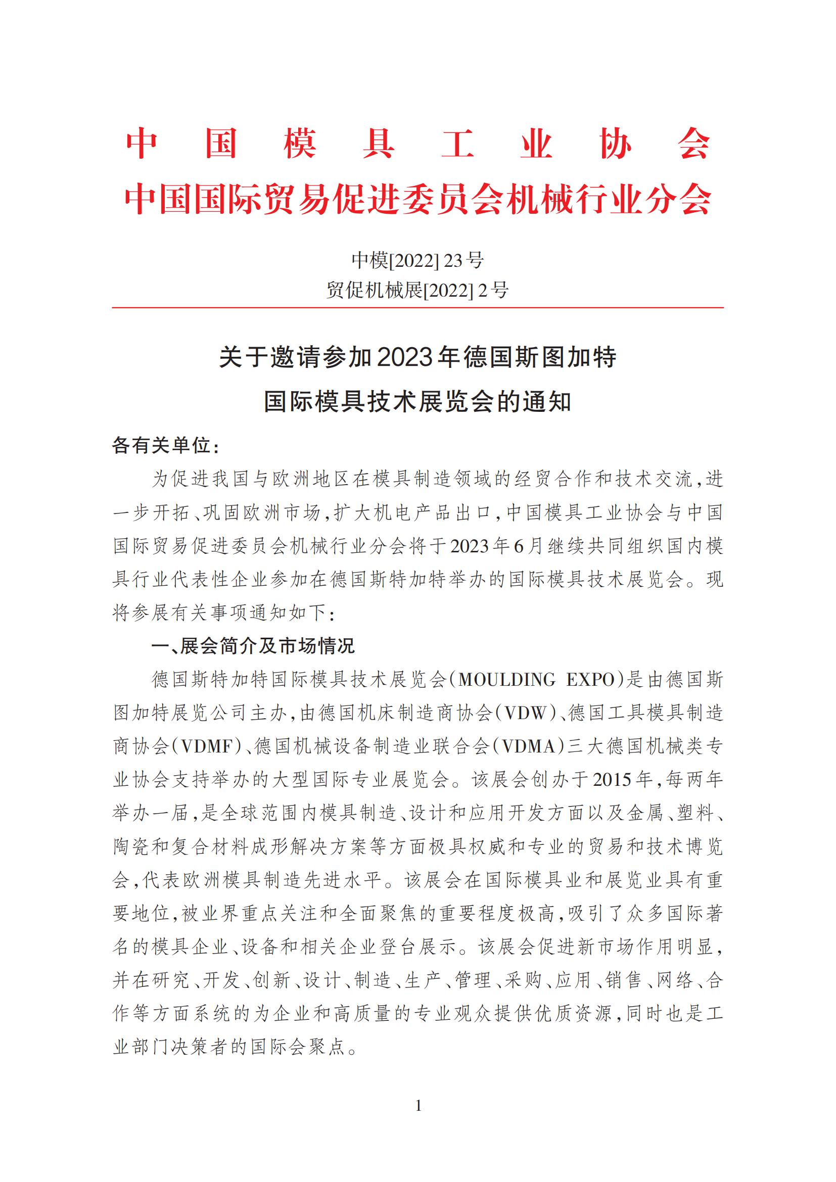 關(guān)于邀請參加2023年德國斯圖加特國際模具技術(shù)展覽會(huì )的通知