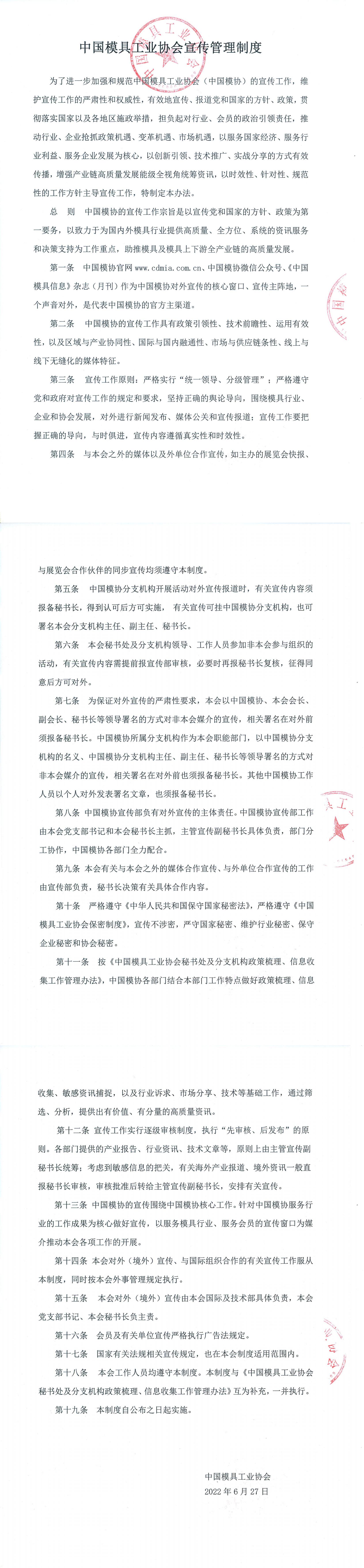 中國模具工業(yè)協(xié)會(huì )宣傳管理制度