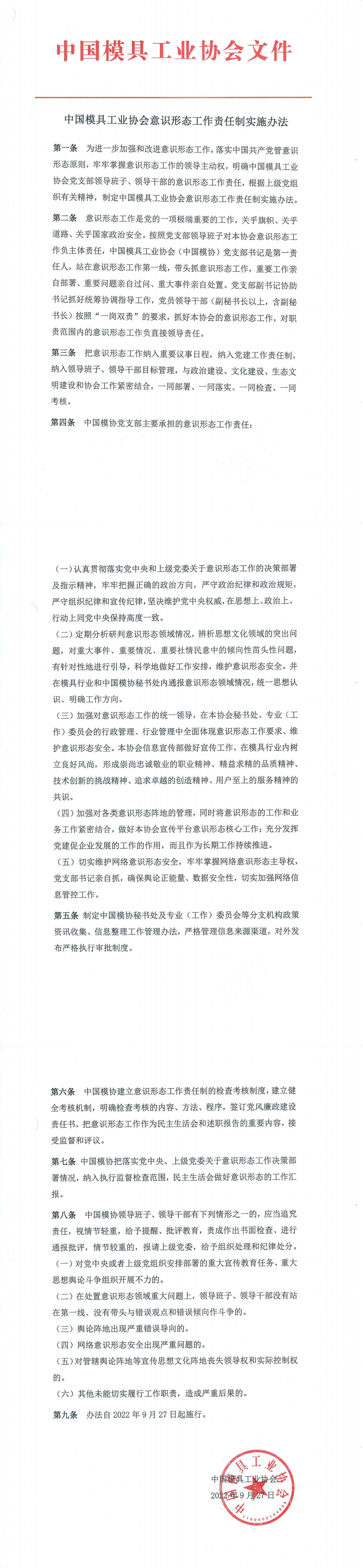 中國模具工業(yè)協(xié)會(huì )意識形態(tài)工作責任制實(shí)施辦法