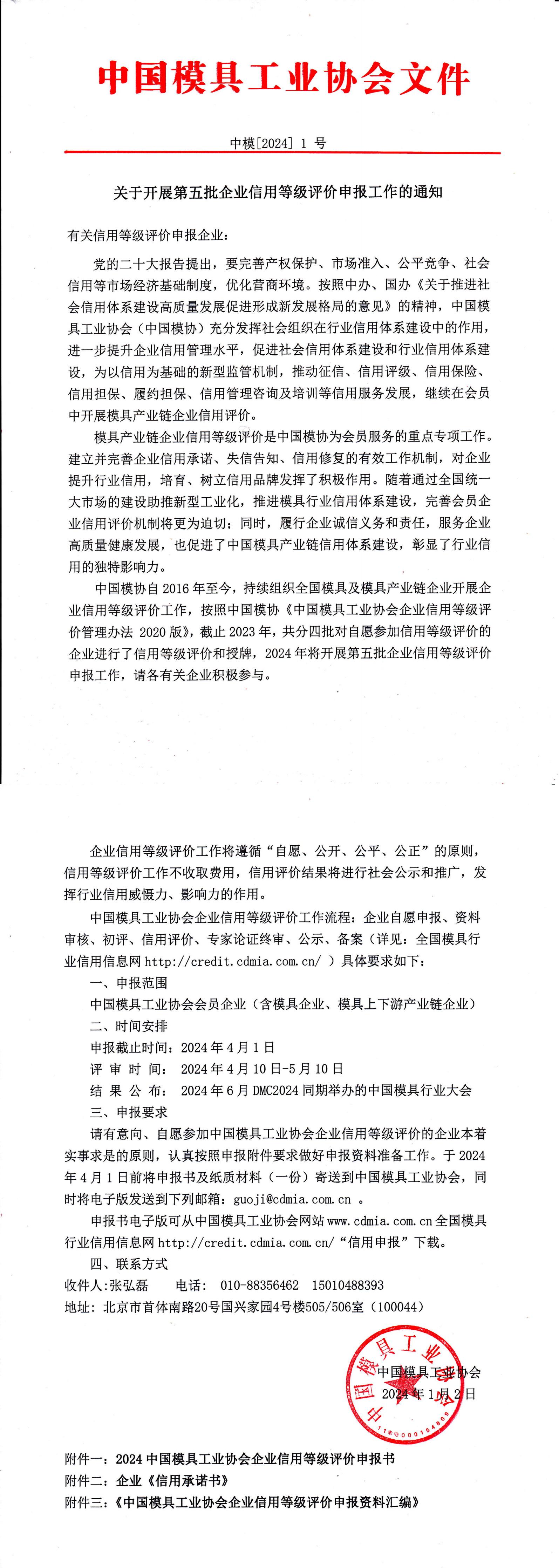 附件一:2024中國模具工業(yè)協(xié)會(huì )企業(yè)信用等級評價(jià)申報書(shū).docx