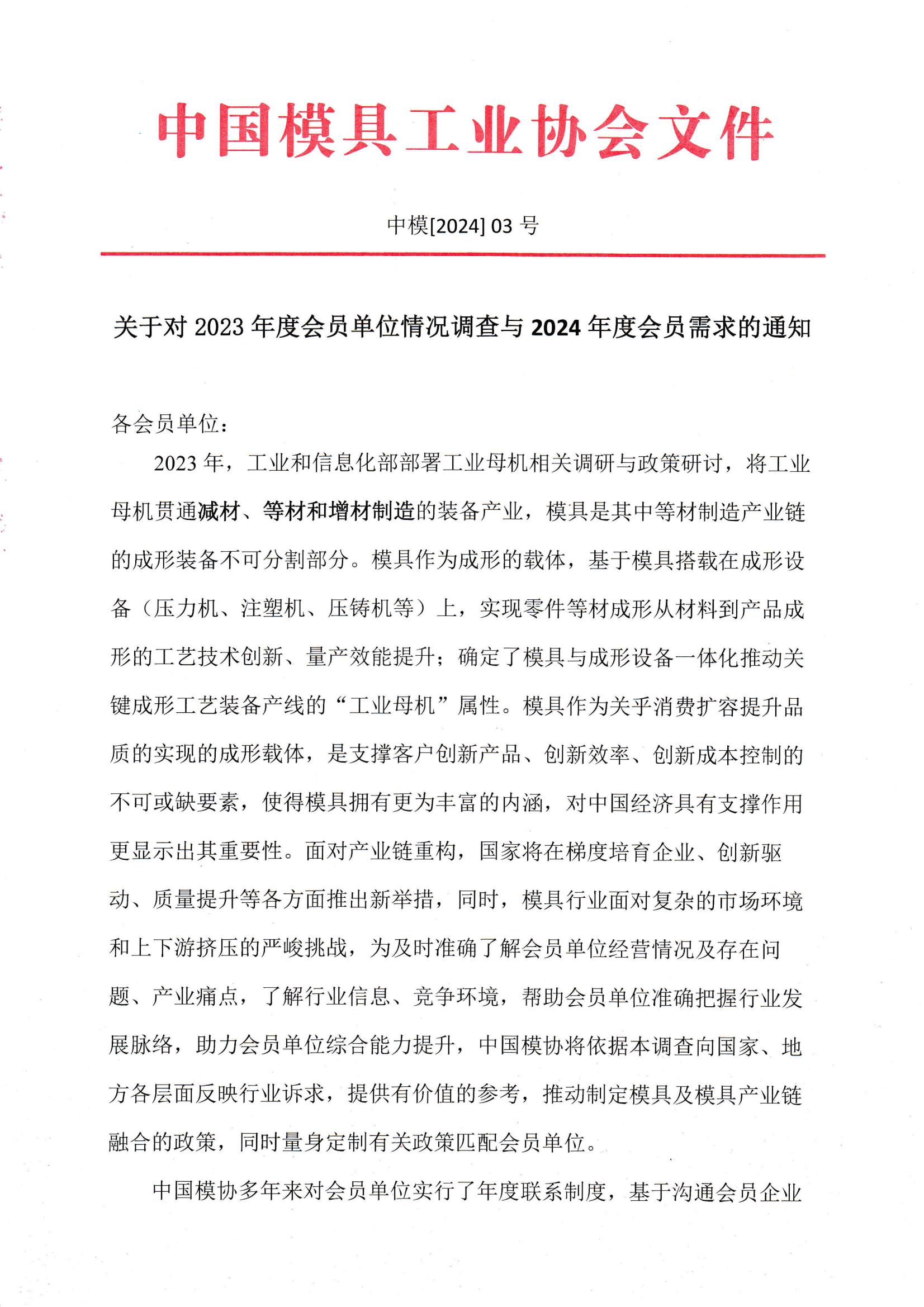 關(guān)于對2023年度會(huì )員單位情況調查與2024年度會(huì )員需求的通知