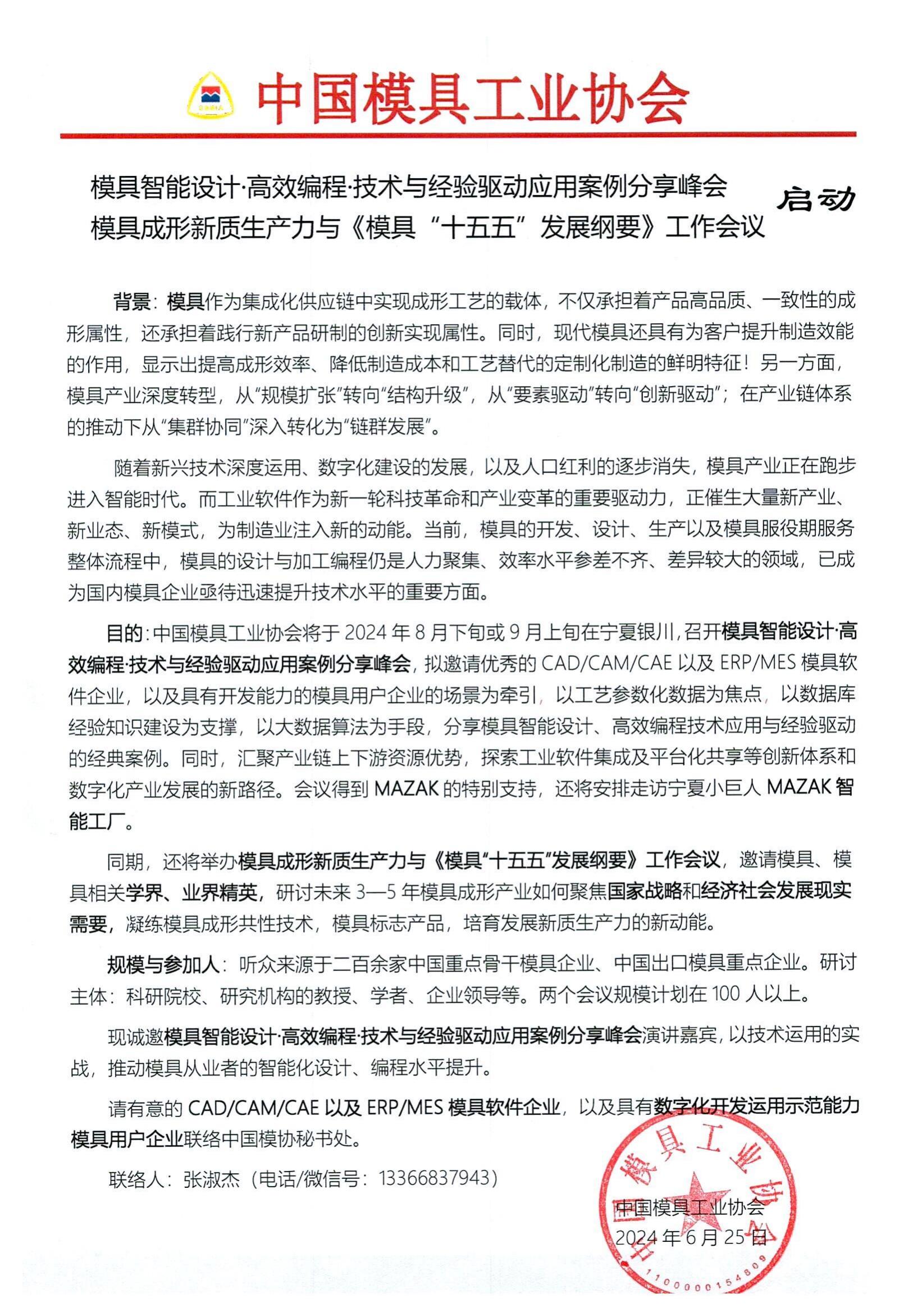 模具智能設計?高效編程?技術(shù)與經(jīng)驗驅動(dòng)應用案例分享峰會(huì );模具成形新質(zhì)生產(chǎn)力《模具“十五五”發(fā)展綱要》工作會(huì )議 啟動(dòng)