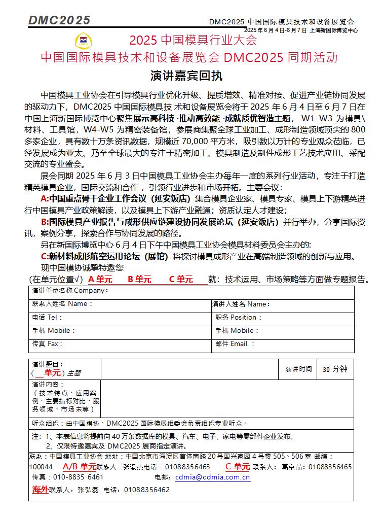 DMC2025中國模具行業(yè)大會(huì )演講嘉賓回執